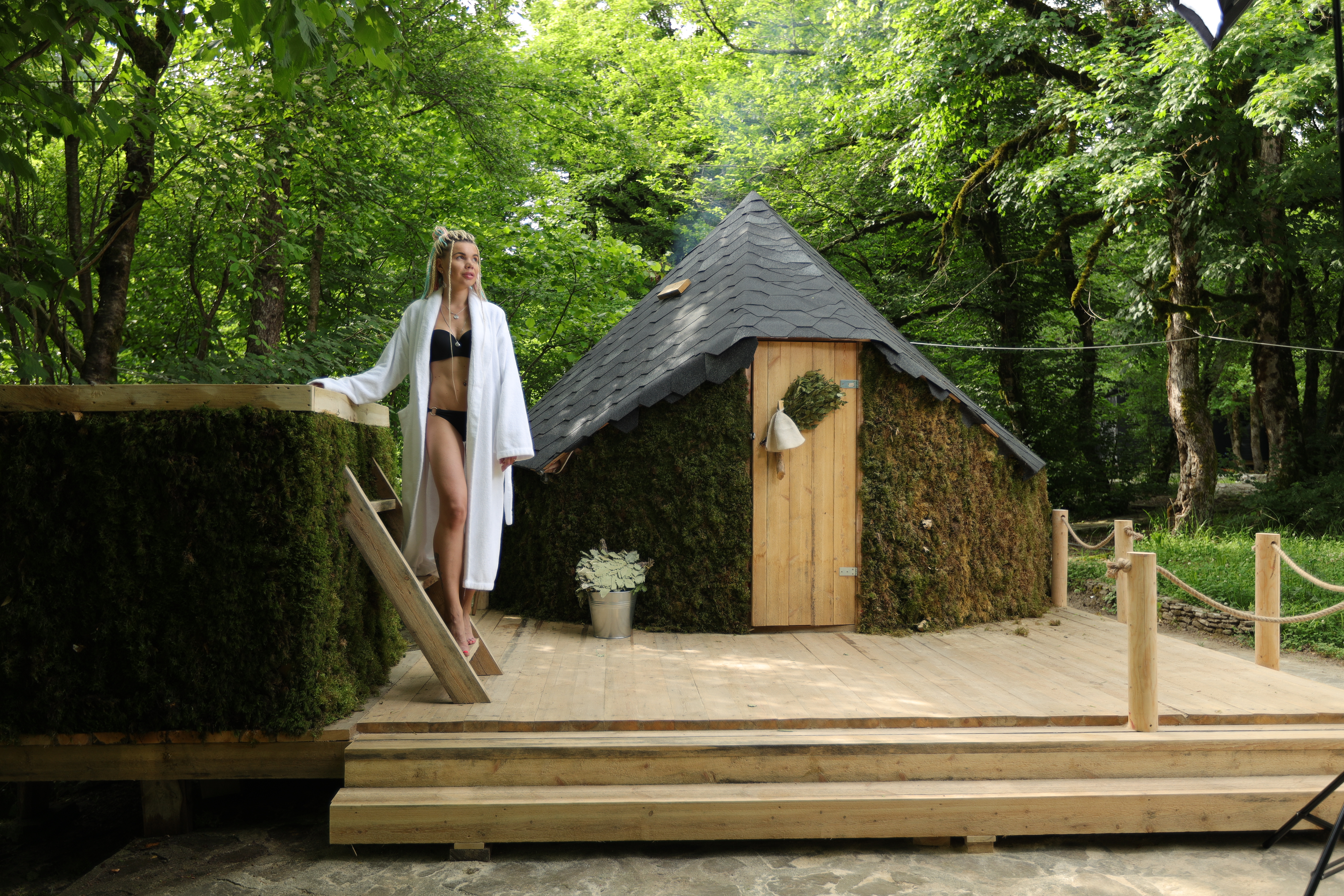 - Вишенкой на торте станет возможность окунуться в горную реку сразу после посещения бани.
