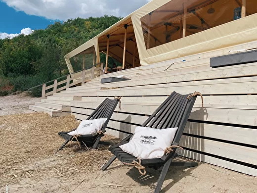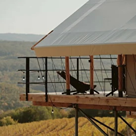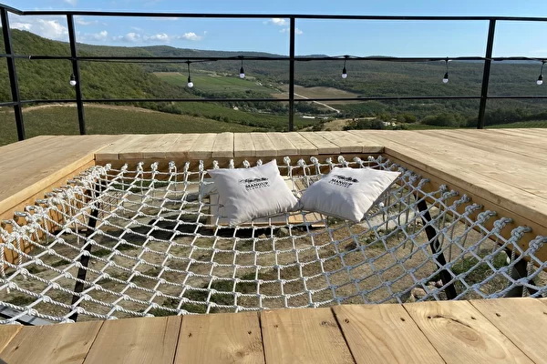 Уютный глэмп-ресторан с панорамным видом на виноградники станет идеальной площадкой для вашего завтрака, вашего праздника или винной дегустации.
