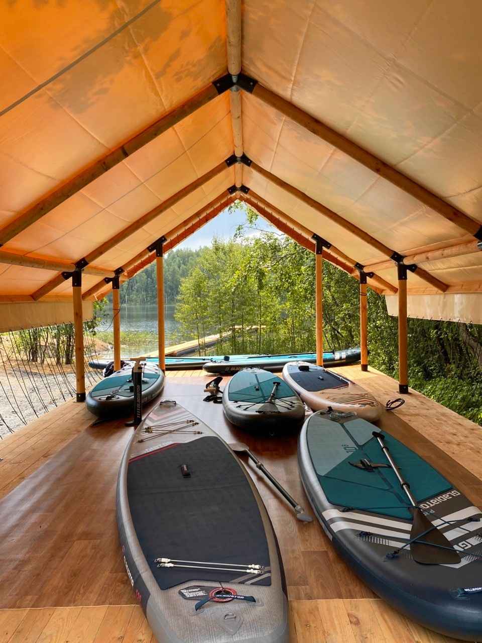 Есть все необходимое как и для активного, так и для спокойного, умиротворенного отдыха. Рядом с базой отдыха расположено кафе, где можно насладиться вкусными блюдами и даже поиграть в настольные игры.