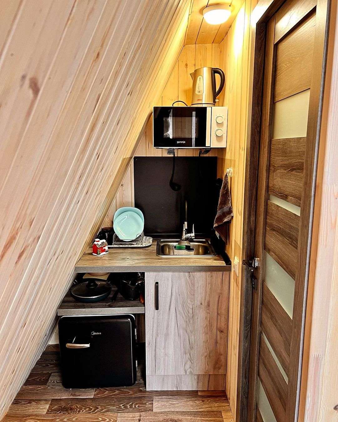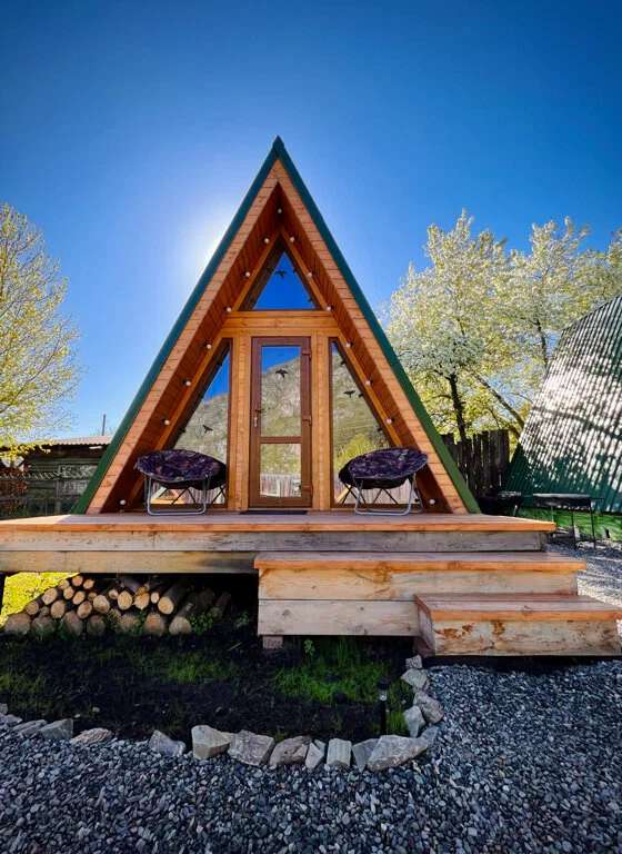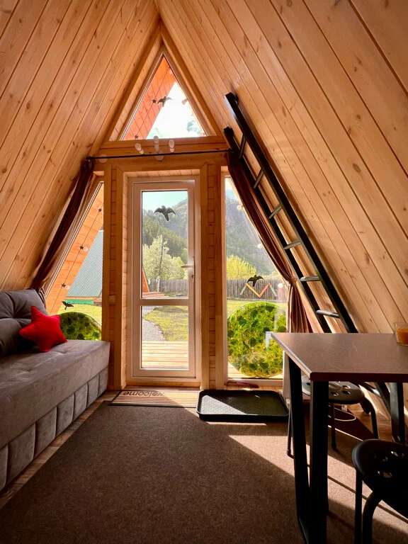 Уютные треугольные домики на 2-3 человек со всем необходимым.