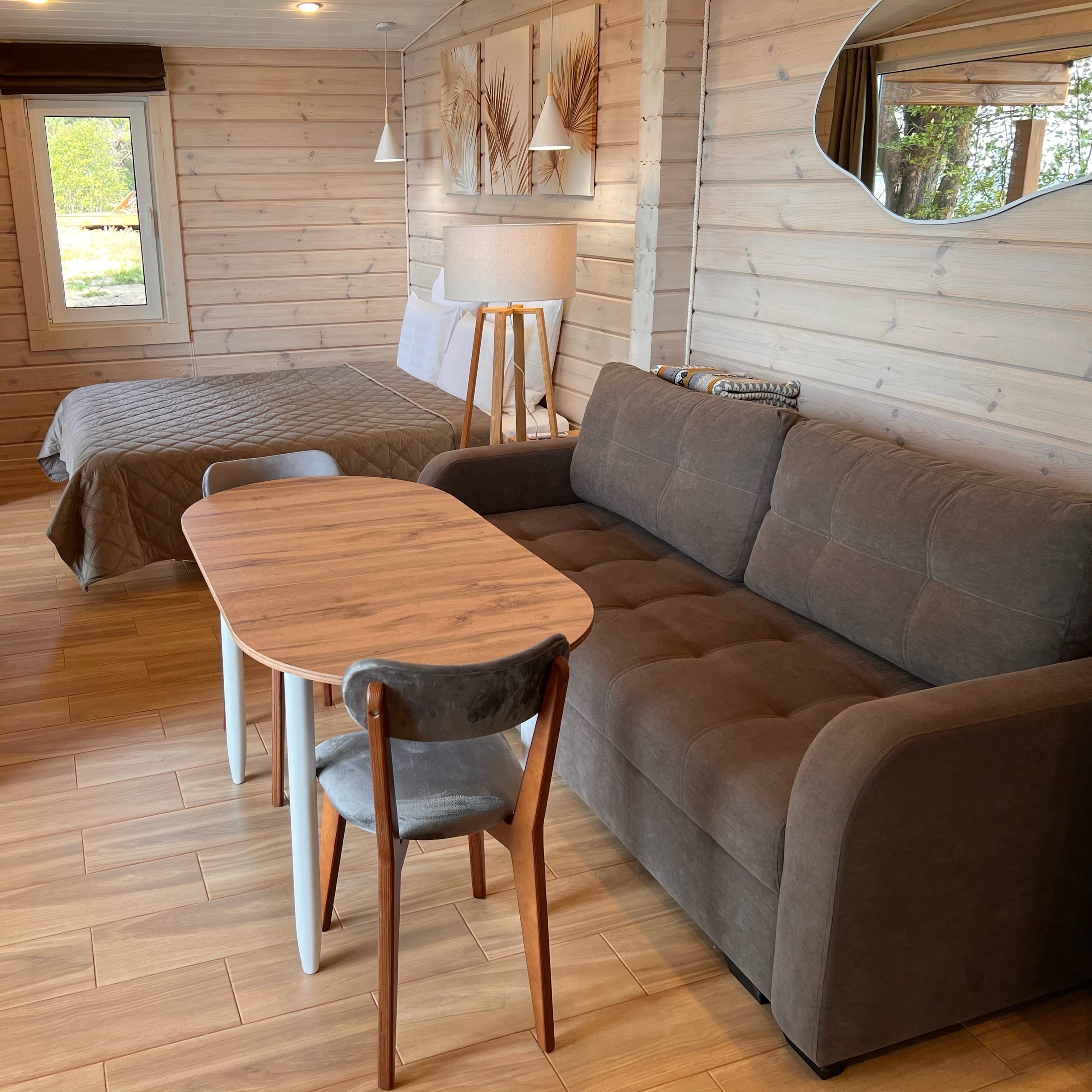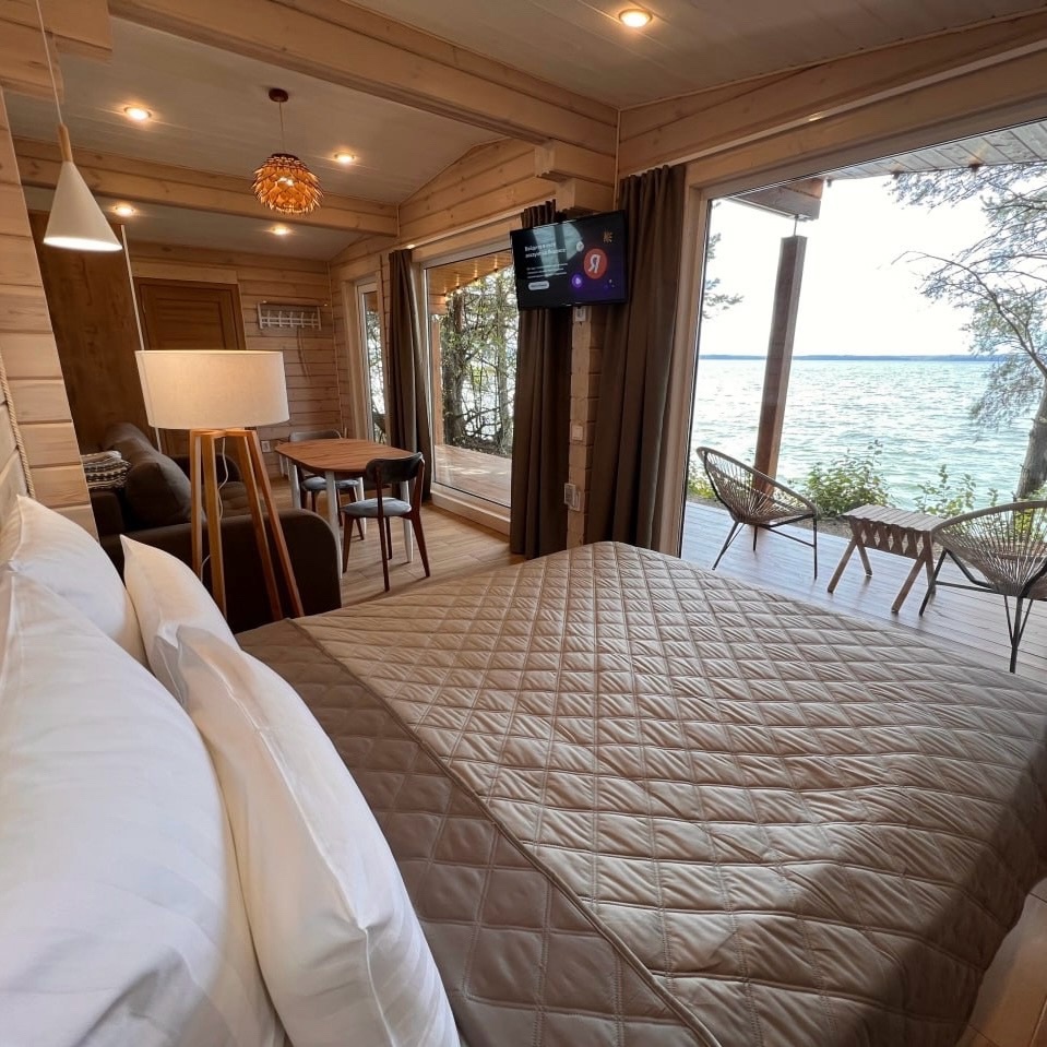 Уютные домики с панорамными окнами — ваше личное убежище в сердце природы! Просторные спальни и гостиные, наполненные светом, откроют перед вами невероятные виды, а комфорт, уют и стильный интерьер не оставят равнодушными даже самых взыскательных гостей.