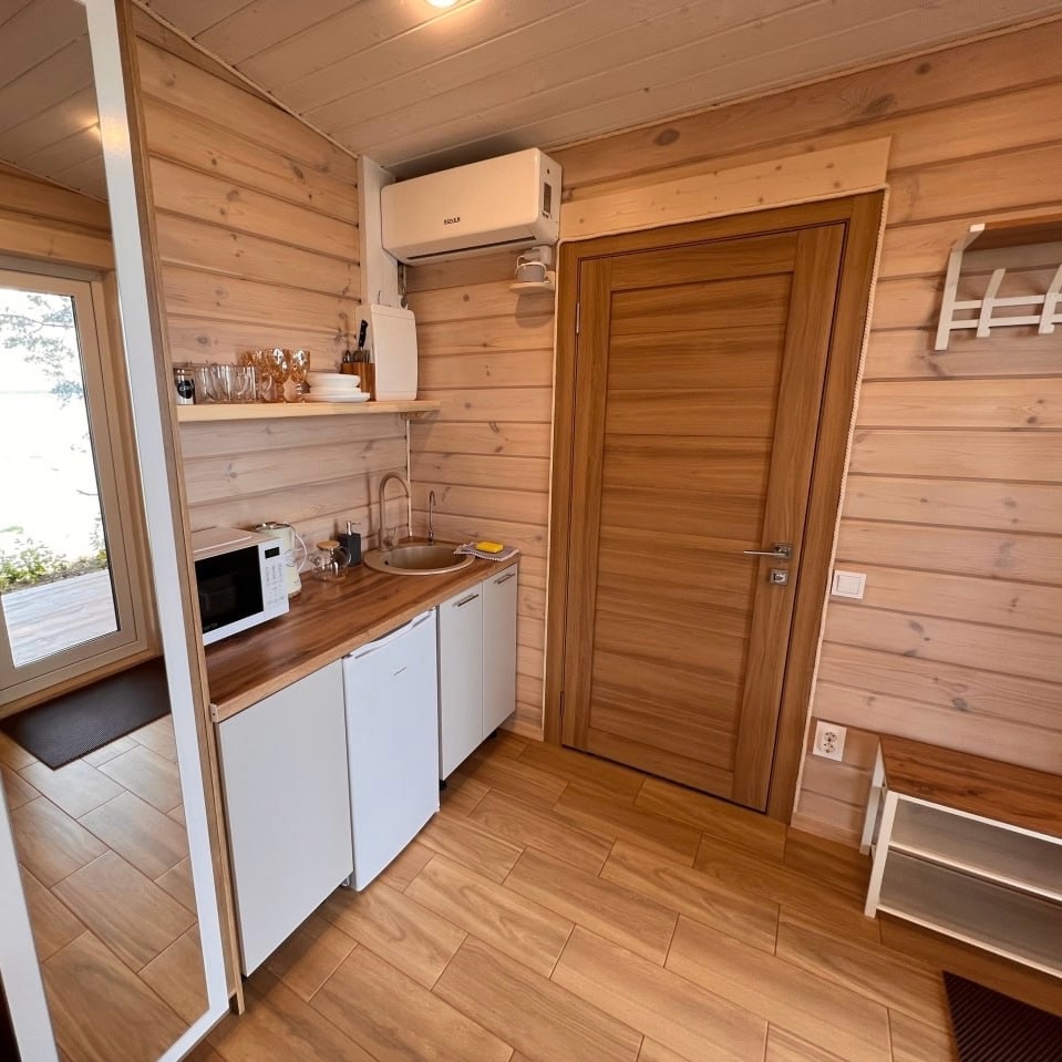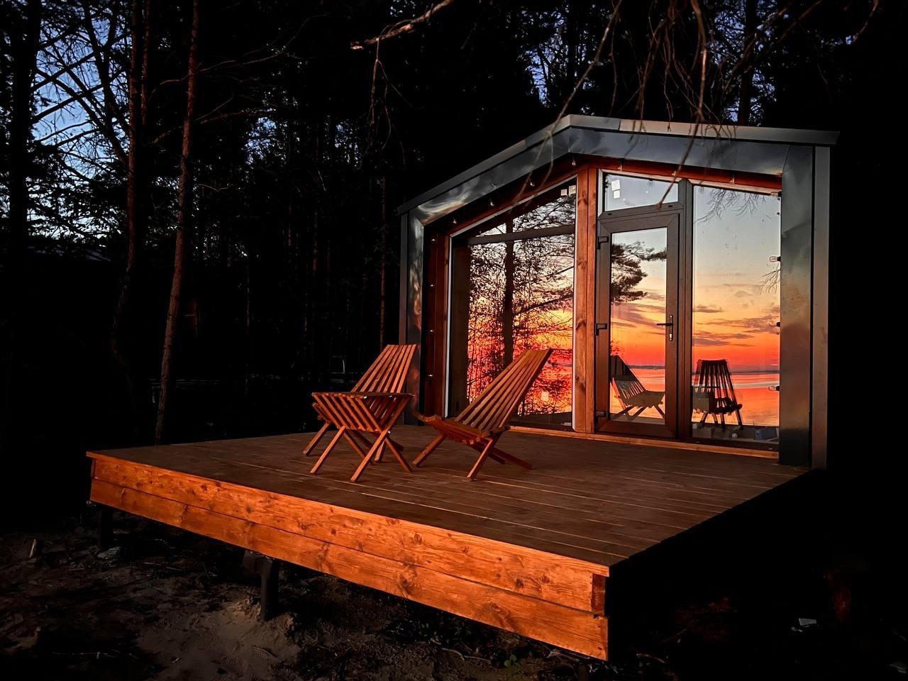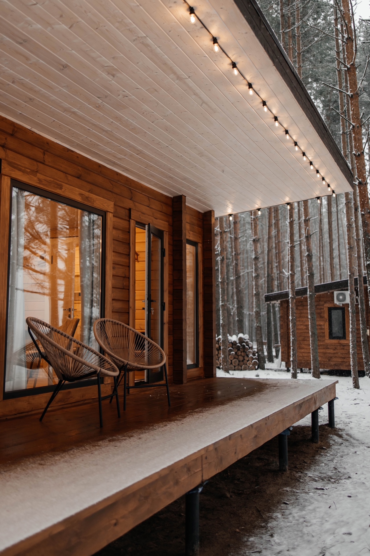 - Каждому домику — отдельная веранда, где можно насладиться свежим воздухом и полюбоваться видами.