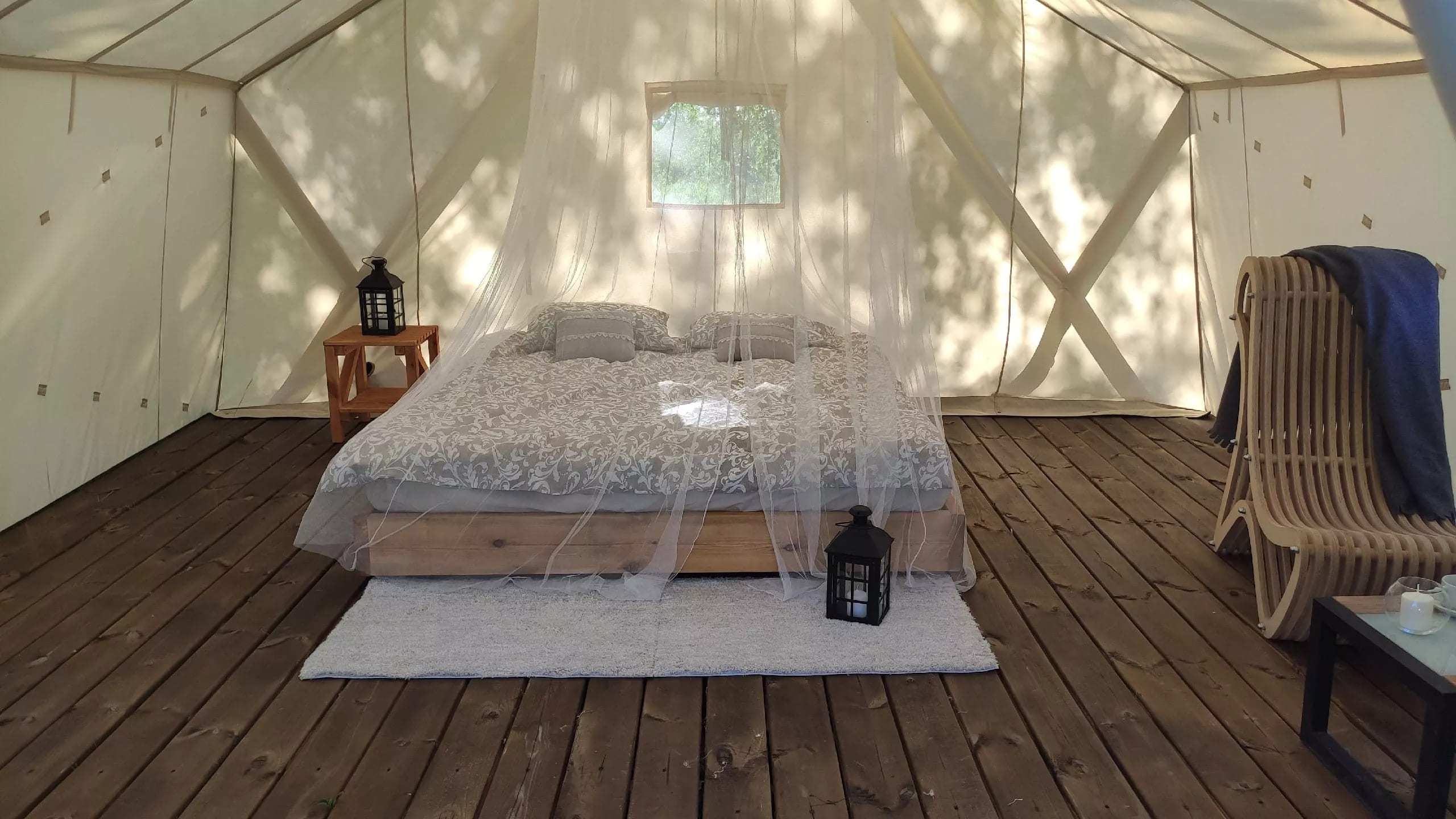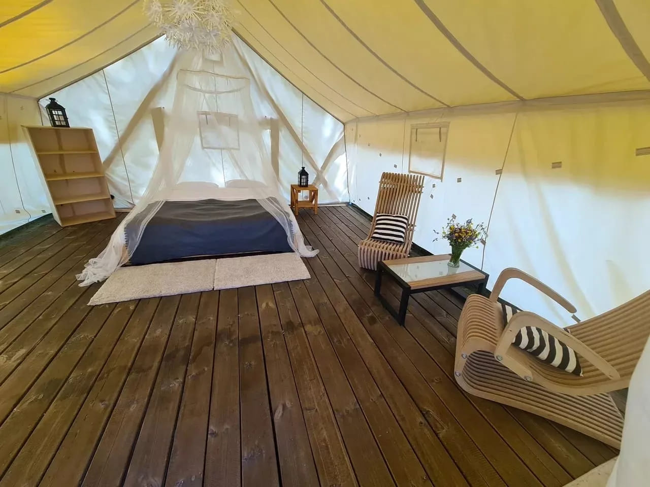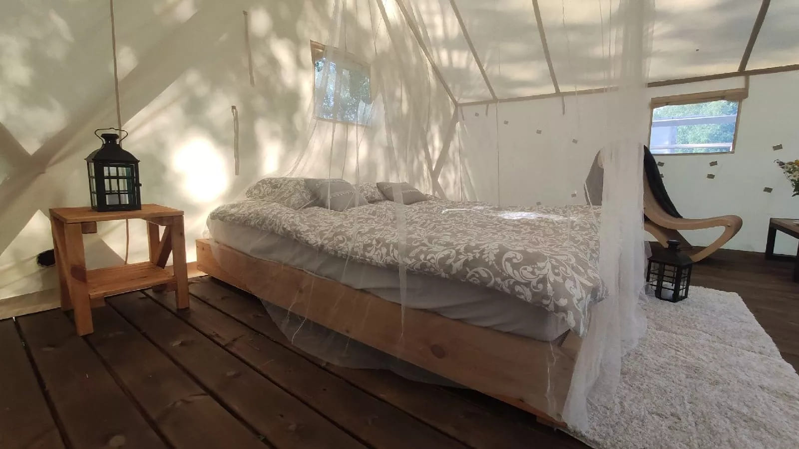 20 уютных шатров вместимостью 2-6 человек каждый – палаточный городок на благоустроенной территории базы отдыха «Остров Приключений».