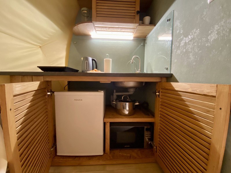 - Теплые полы, Wi-Fi, кондиционер, полноценная кухня, холодильник, микроволновая печь, посудомоечная машина, кофемашина, чайник.