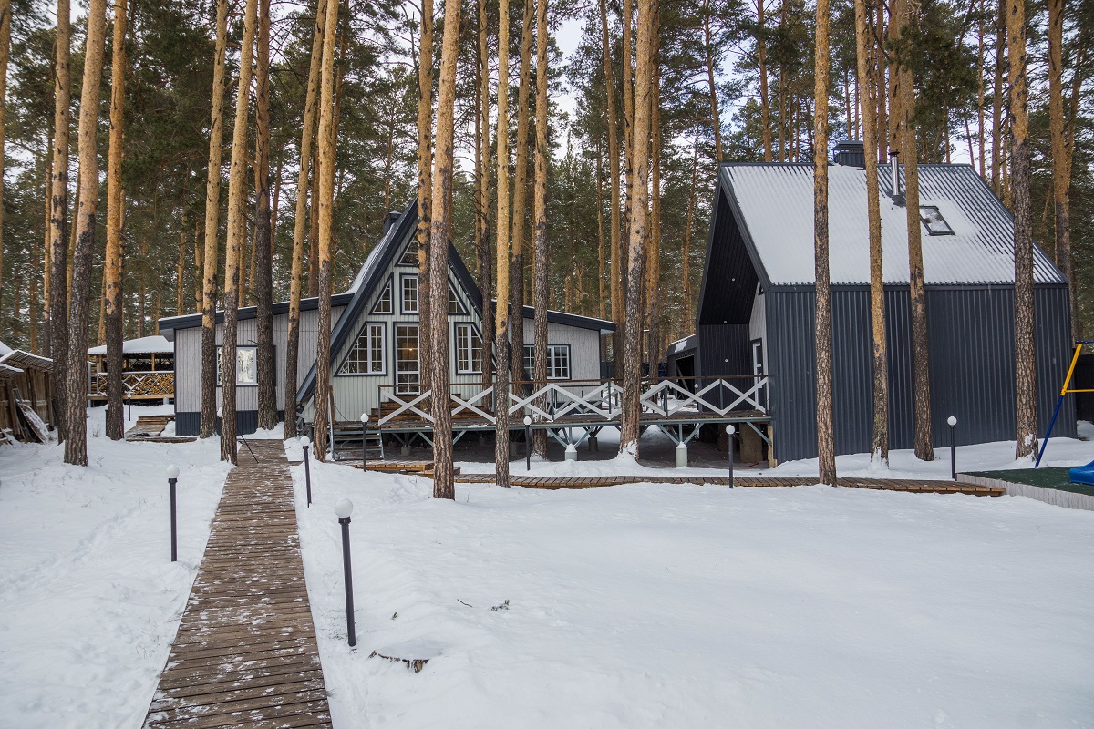 После парной можно отдохнуть на открытой террасе смотря на небо и вершины сосен, а для закаленных – обтереться белоснежным снегом!