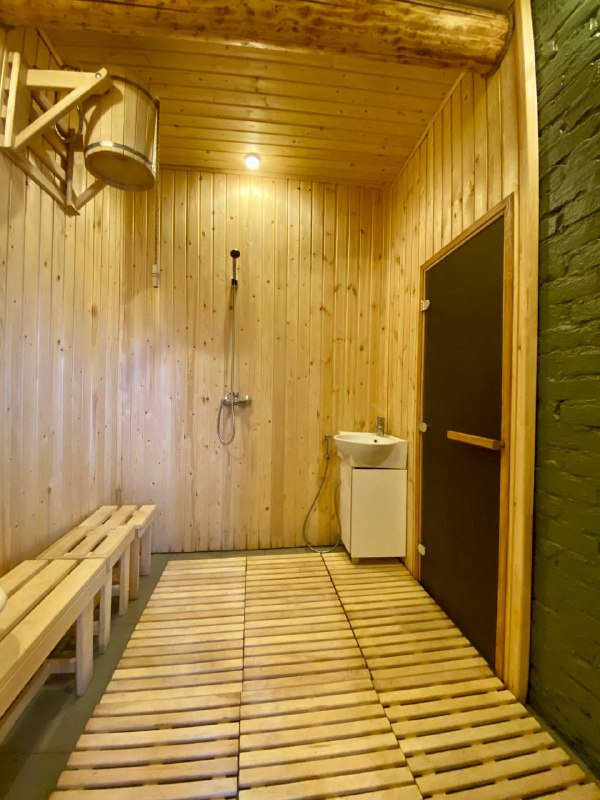 К Вашим услугам русская баня с одной из лучших печей «Ферингер» на дровах, с закрытой каменкой, обеспечивающая мелкодисперсный пар невидимый глазу. Натуральное дерево, запах смолы, ароматических масел и трав, обливное ведро, душ и комната отдыха – всё, что нужно для расслабления и оздоровления!