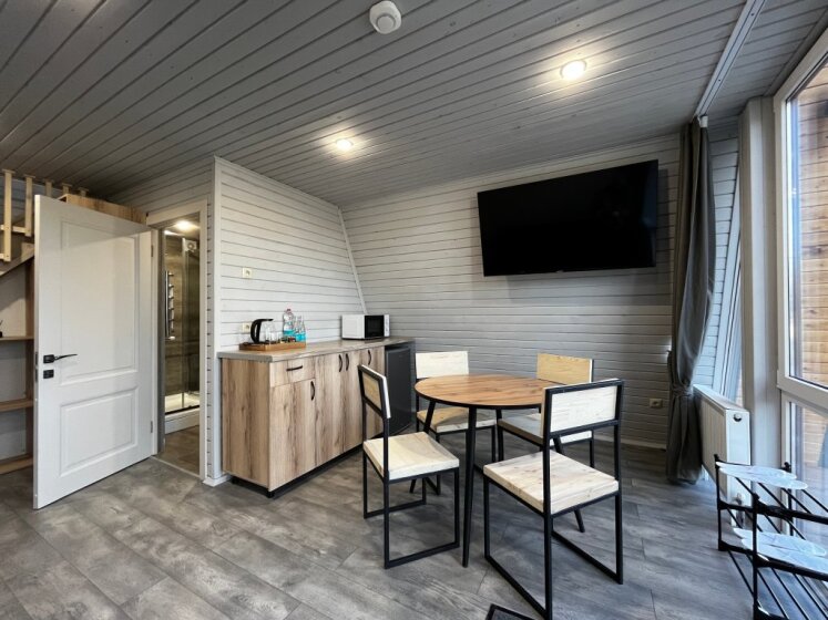 Отель состоит из 10 комфортабельных домиков А-Фрейм которые расположены на набережной реки Терек. Для гостей широкий спектр дополнительных услуг, включая баню, катание на лошадях, корты для большого тенниса, зону барбекю, прогулки на свежем воздухе. Забронируйте один из домиков с прекрасным видом на березовую рощу и реку Терек. Насладитесь барбекю в кругу семьи и друзей на площадке у реки.