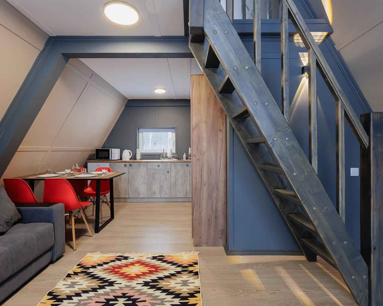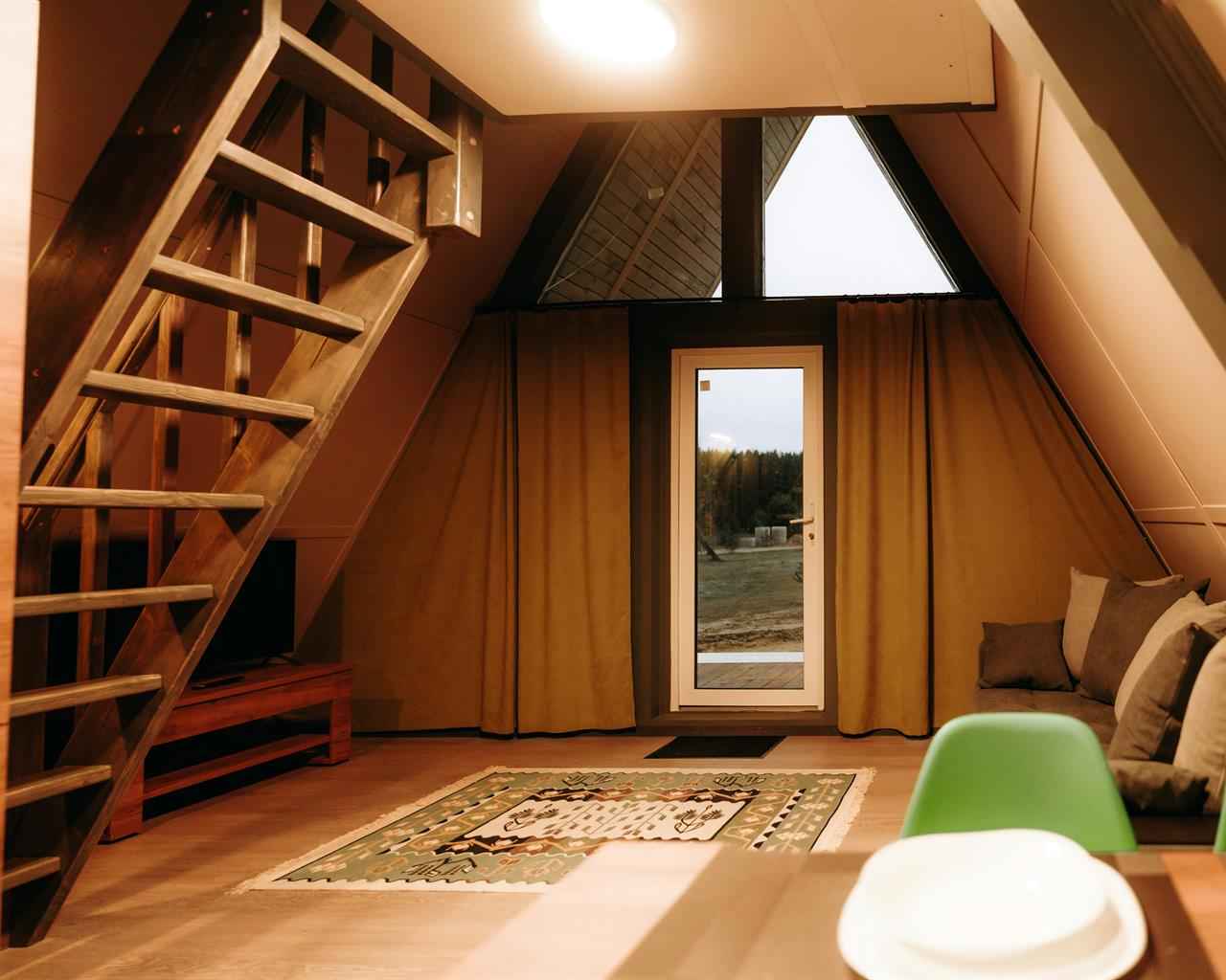 На территории также имеется кафе с панорамным видом на окружающую природу, а также баня, где гости могут расслабиться и отдохнуть после насыщенного дня. А заняться есть чем: для гостей доступны настольные игры, тюбинги, каток, настольный теннис, бадминтон и другие развлечения.