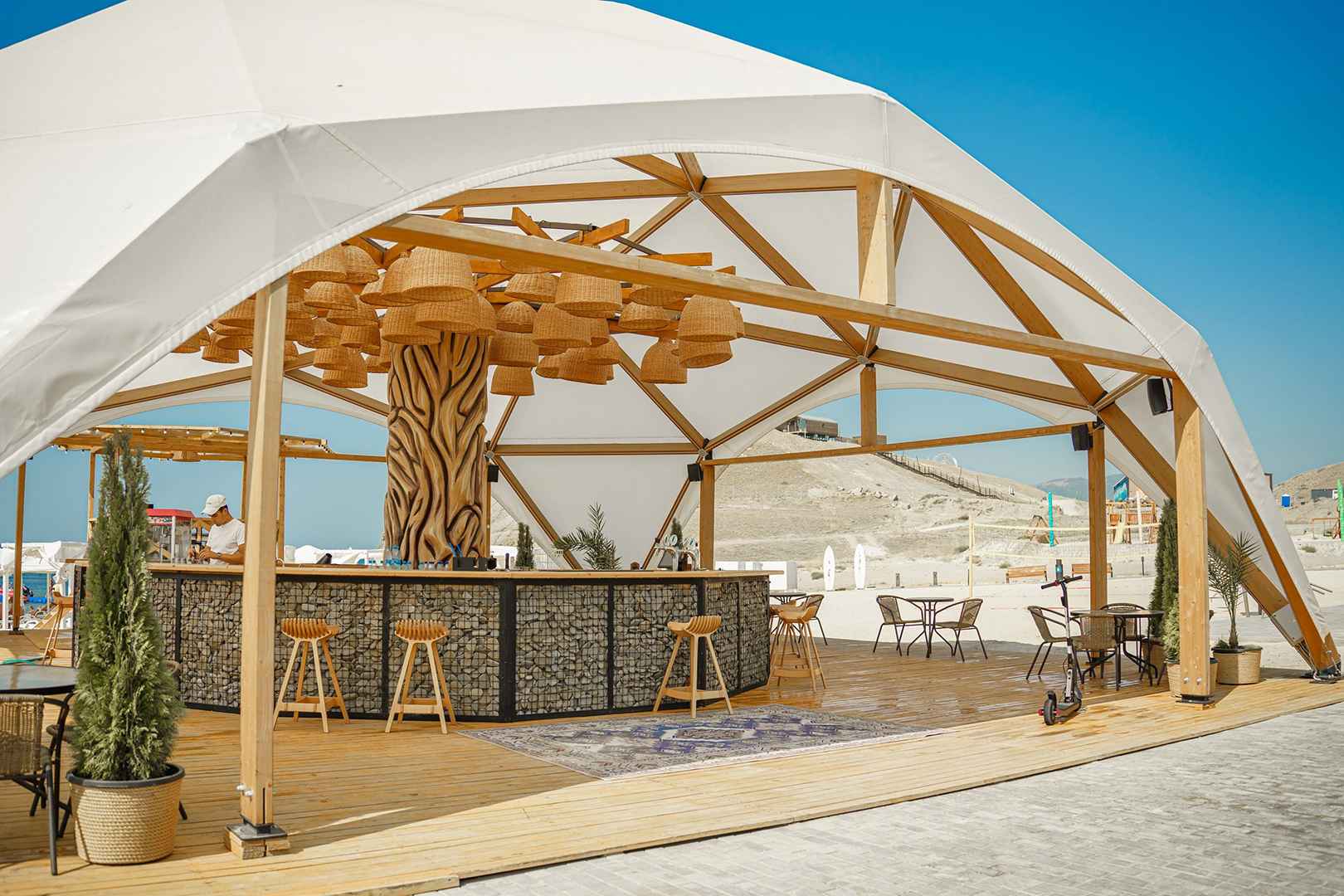 Для проживания в глэмпинге Пляж Ракета доступны просторные виллы со всеми необходимыми удобствами внутри, а также уютные кемпинг-домики, в которых можно отдохнуть более бюджетно, но по-прежнему в комфорте.