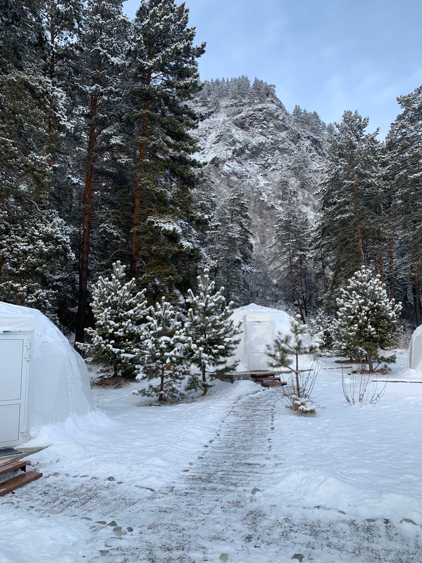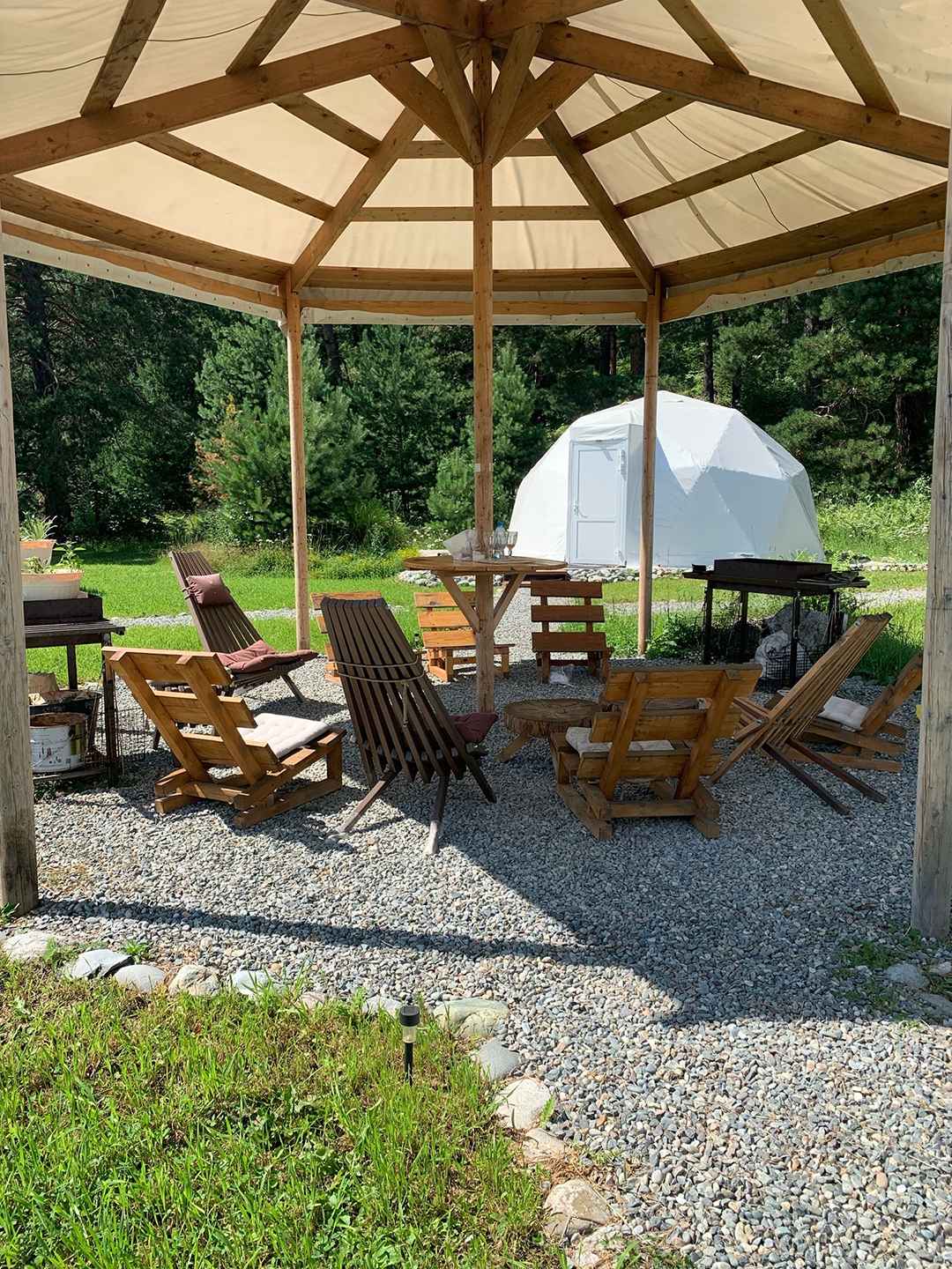 Подгорный – это глэмпинг, находящийся у подножия горы в селе Манжерок в республике Алтай, окруженный реликтовым лесом.