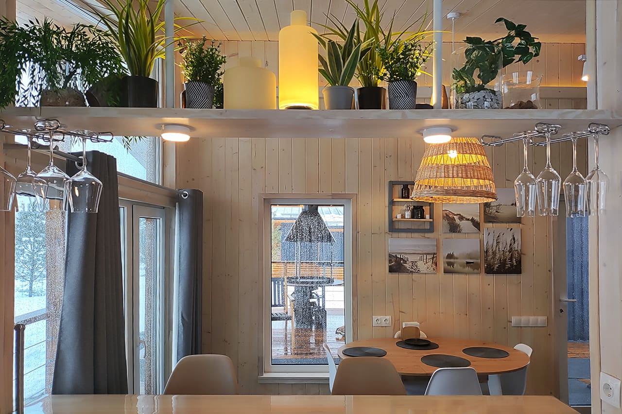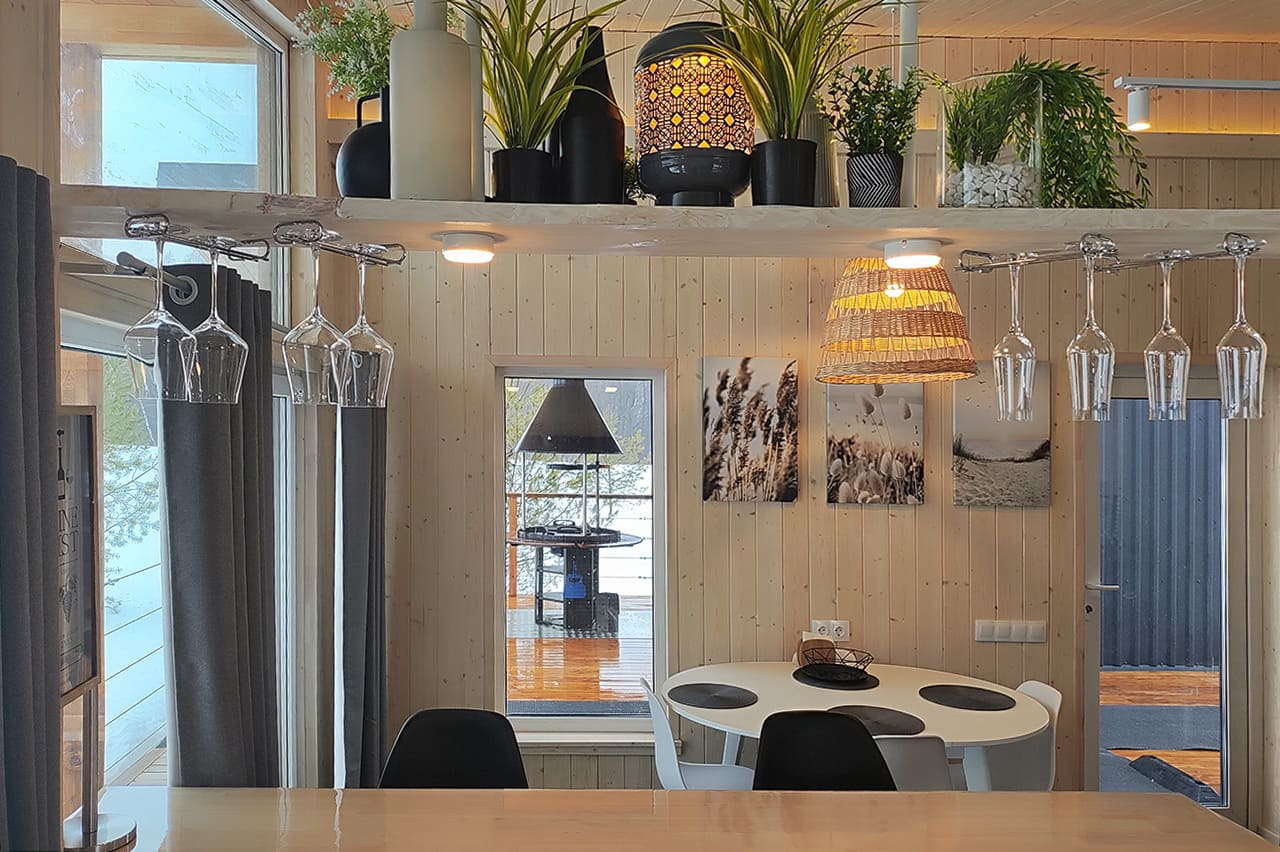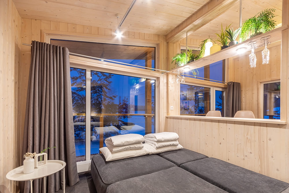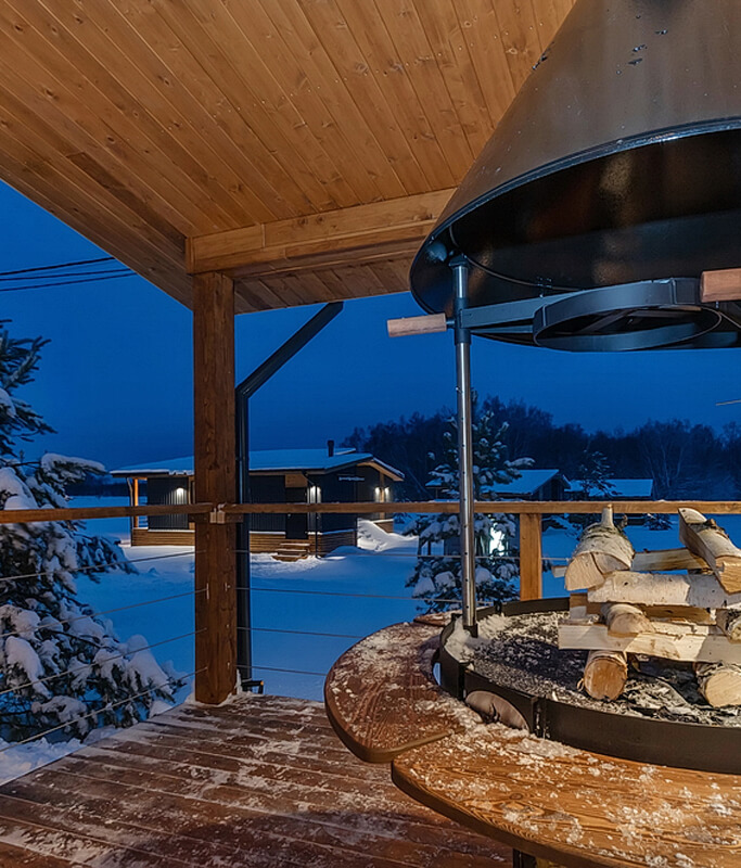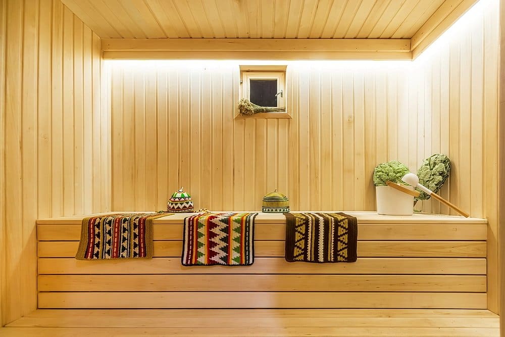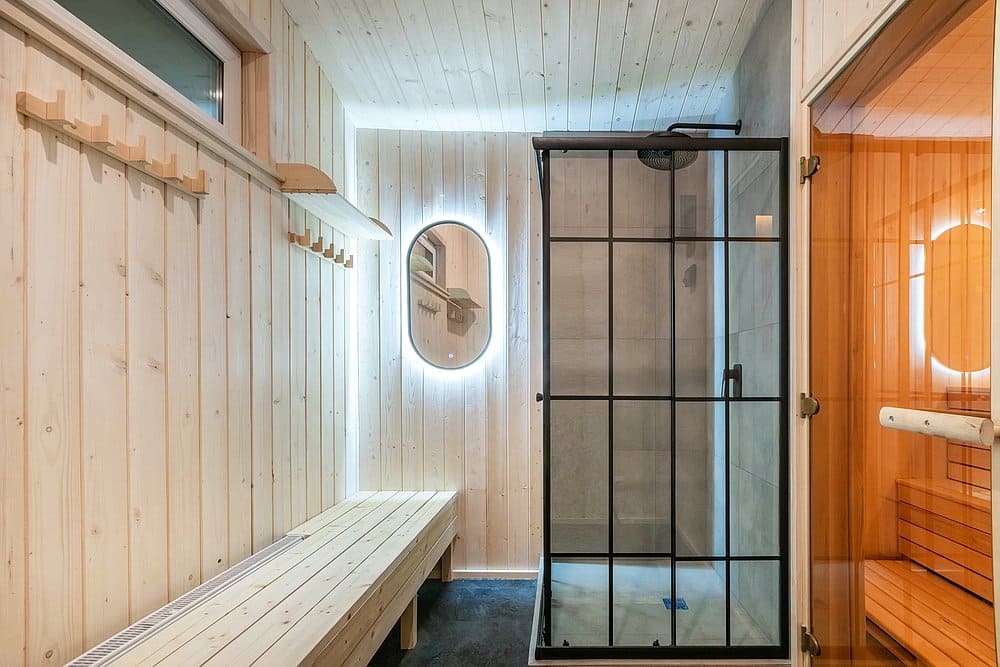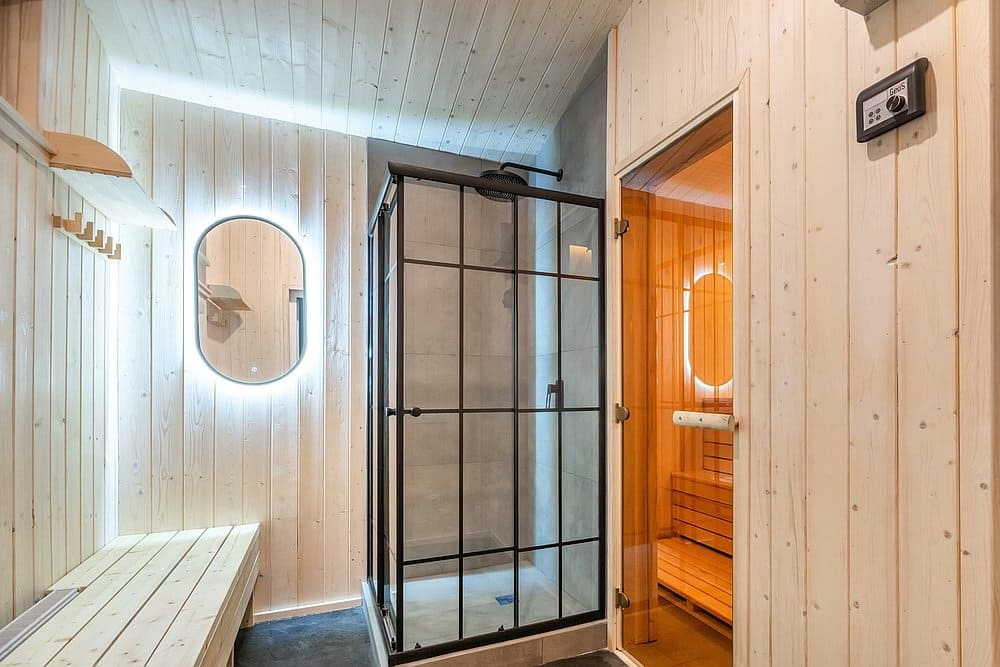 У каждого коттеджа имеется собственная сауна. В саунах находится помещение для переодевания со столиком для чайных церемоний и душевой кабиной, а также парильное отделение с электрокаменной печью НАRVIA.