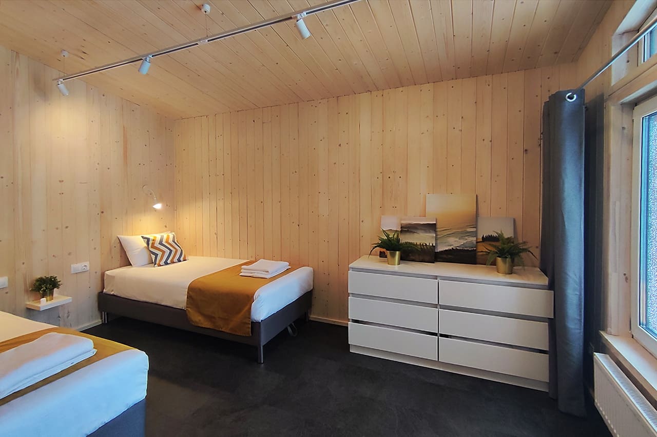 - Одна двуспальная кровать, шириной 160 см (либо две односпальные кровати 80 см)