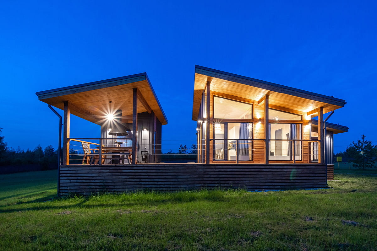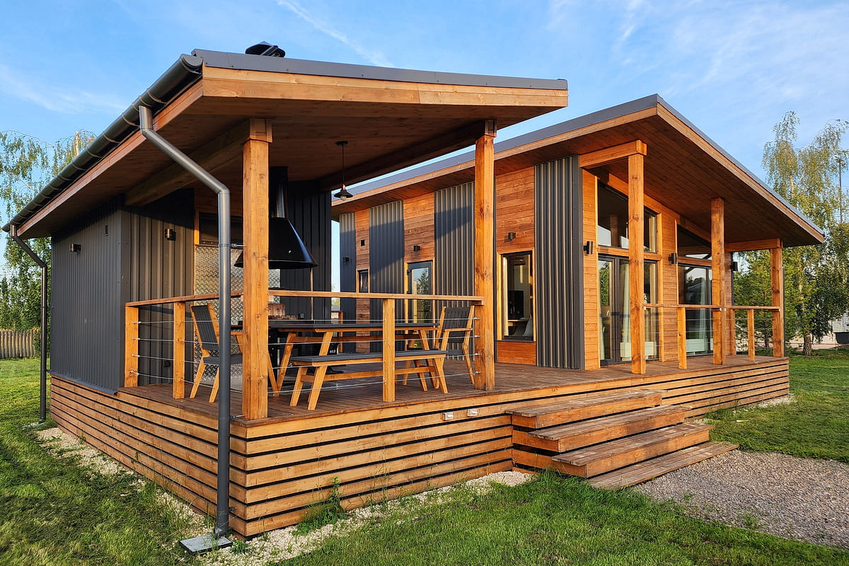 Новые современные коттеджи со всеми удобствами и с барбекю-зоной, расположенной на крытой террасе.