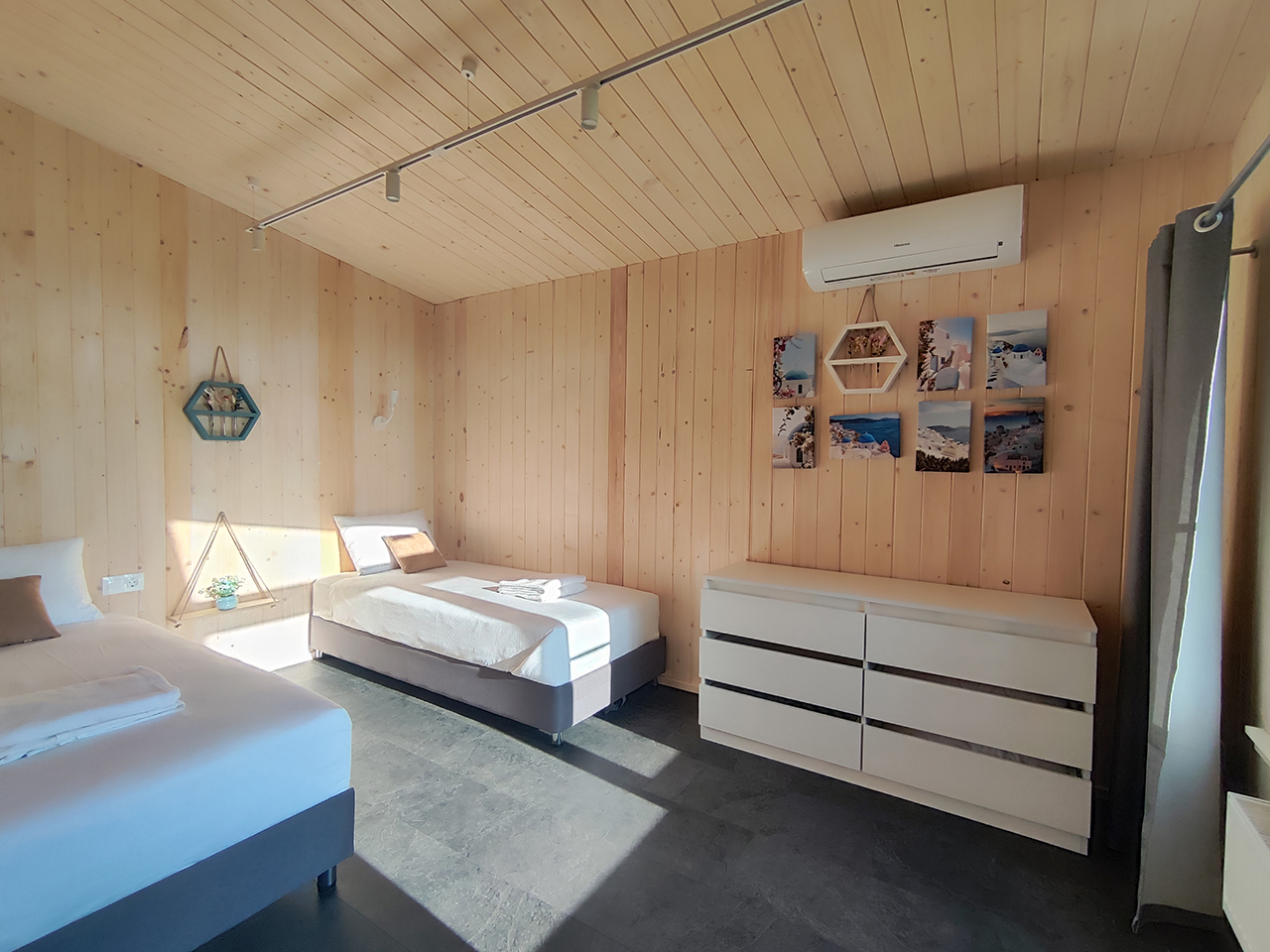 - Одна двуспальная кровать, шириной 160 см и две односпальные кровати 90 см