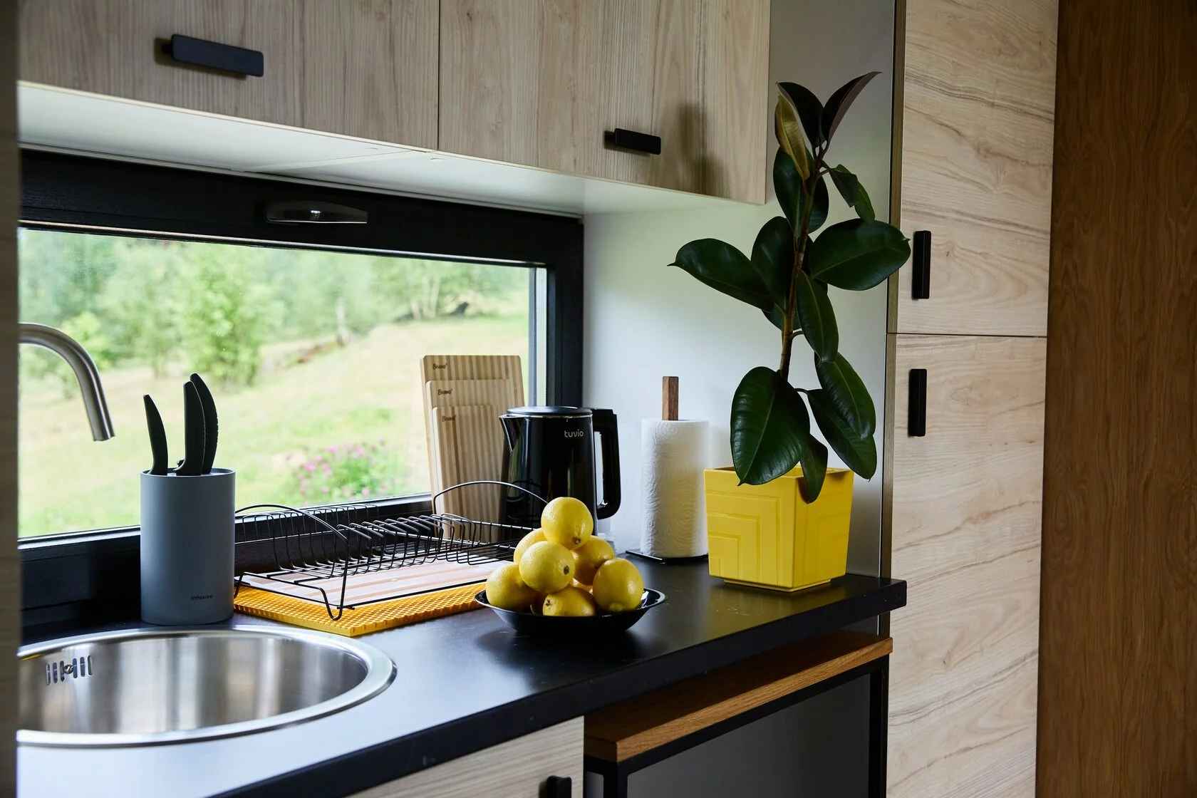 В домах уютно и тепло круглый год, благодаря инфра-красному теплому полу, конвектору и сплит-системе с возможностью как охлаждения, так и нагрева воздуха; в них есть все, что требуется для комфортного пребывания: огромное панорамное остекление, чтобы, просыпаясь с утра и смотря в окно, вы видели мир и ощущали его дыхание, втягивая воздух вместе с ароматом душистого кофе, чашка которого согревает и пробуждает ваши руки и сознание; двуспальная кровать с высоким матрасом, на которой вы будете спать почти так же великолепно, как дома; ванная комната с душем и горячей водой(и мощность напора воды вас приятно удивит, не сомневайтесь); телевизор 4К и Sony PlayStation 5, если за окном совсем пасмурно и никуда не хочется выходить; плита и СВЧ-печь для тех, кто приехал с детьми или просто не любит готовить на углях или открытом огне.