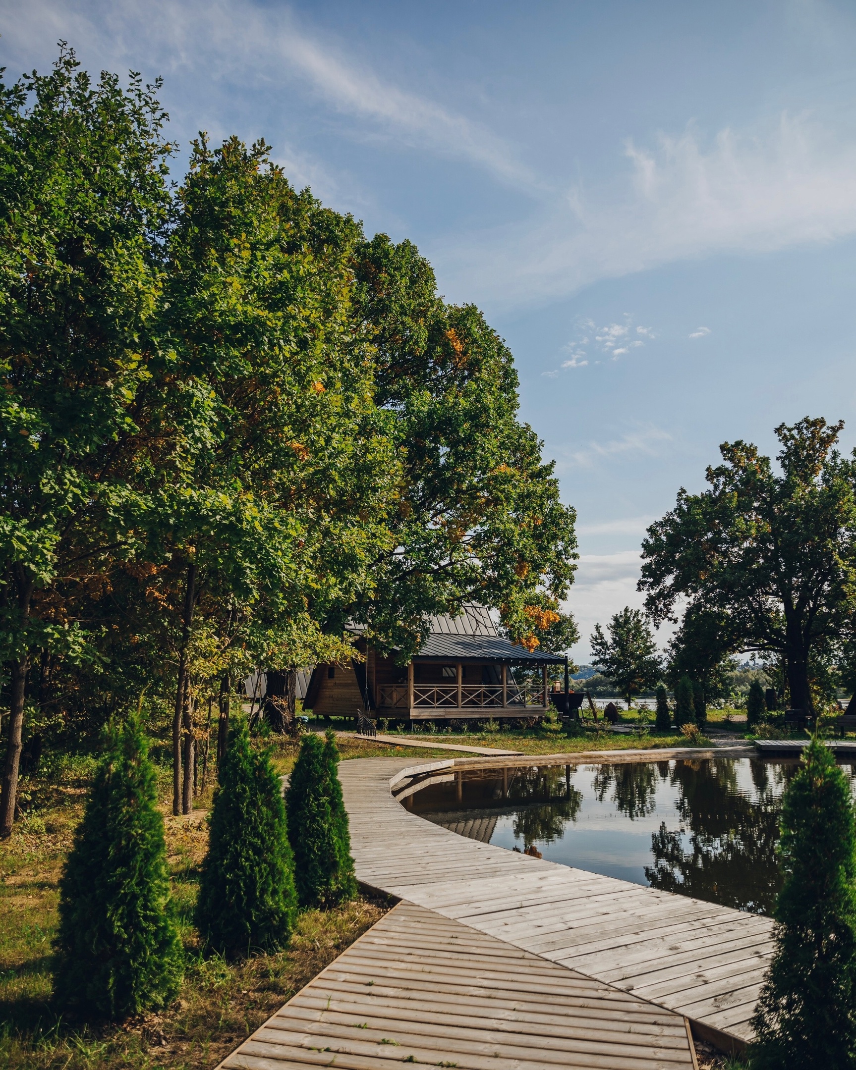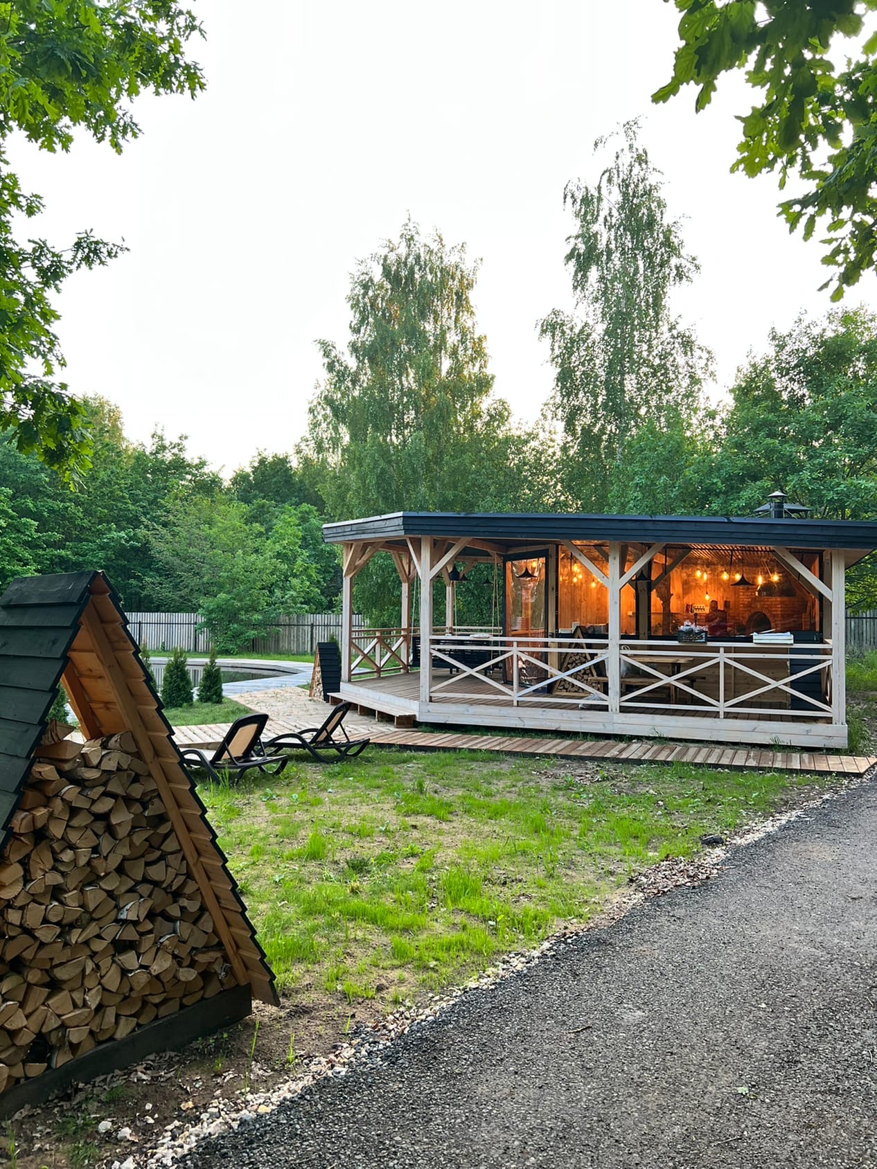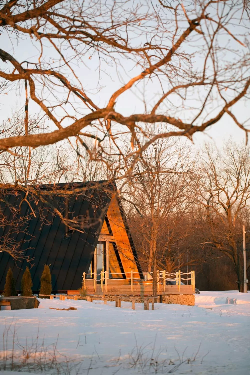 Глэмпинг Ривер в Нижнем Новгороде включает в себя 4 А-фрейм домика, выполненные из экологичных материалов.