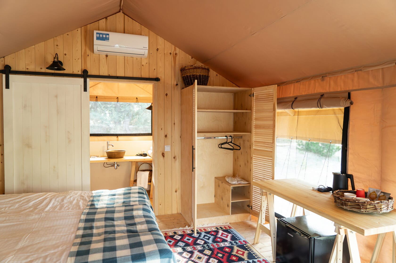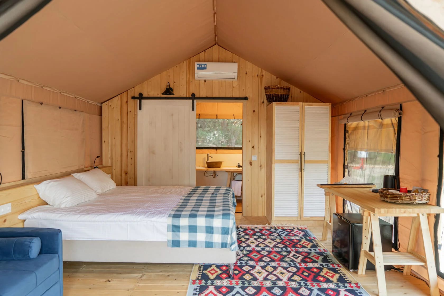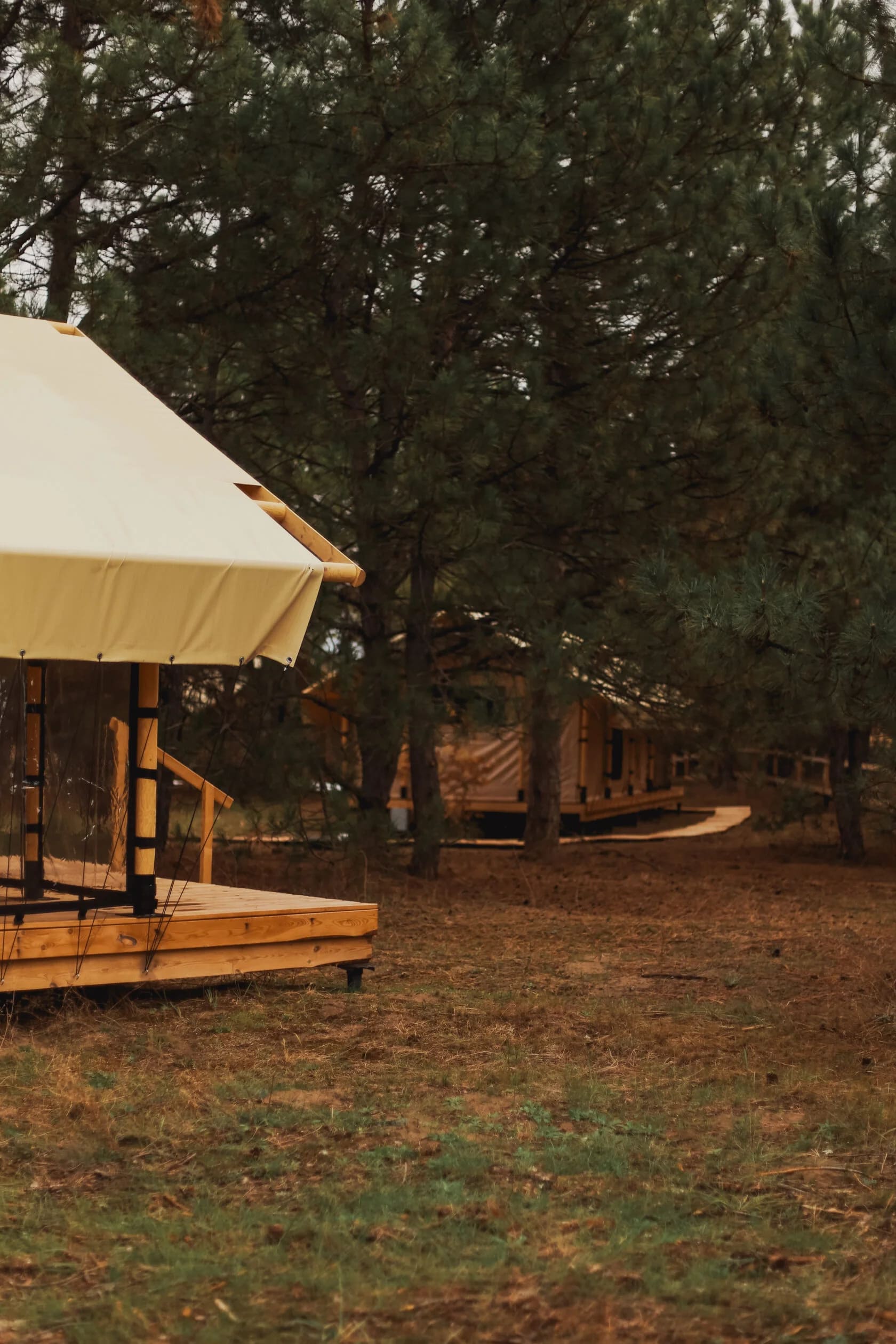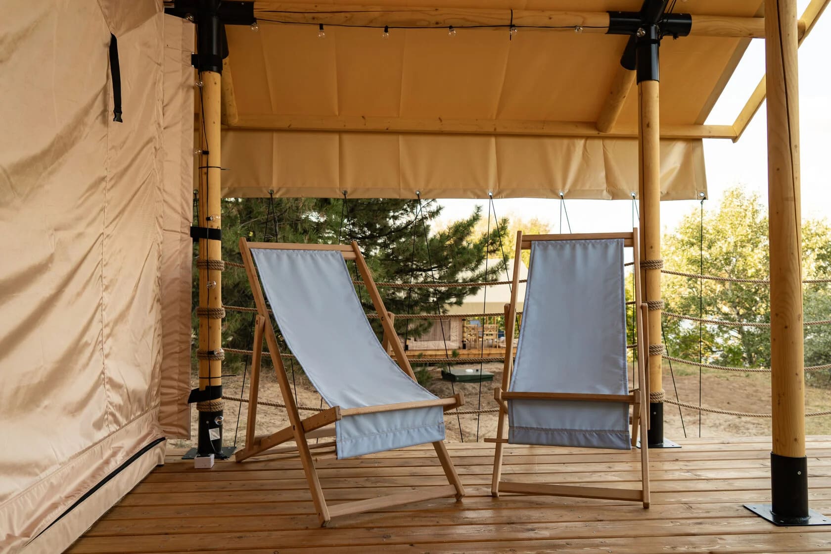 Глэмпинг Синий Яр включает в себя 14 комфортных сафари-тентов в окружении столетних сосен, чистого песка и уникальной природы. Вы можете приехать сюда в любое время года, так как на зиму шатры утепляются специальными «пуховиками». Поэтому после прогулки по зимнему лесу вы быстро сможете согреться. Но теплые носочки все-таки стоит взять. Летом же гостям доступно катание на сапборде, лодке, катере или вейкборде — выбирайте формат отдыха, который подарит незабываемые эмоции.