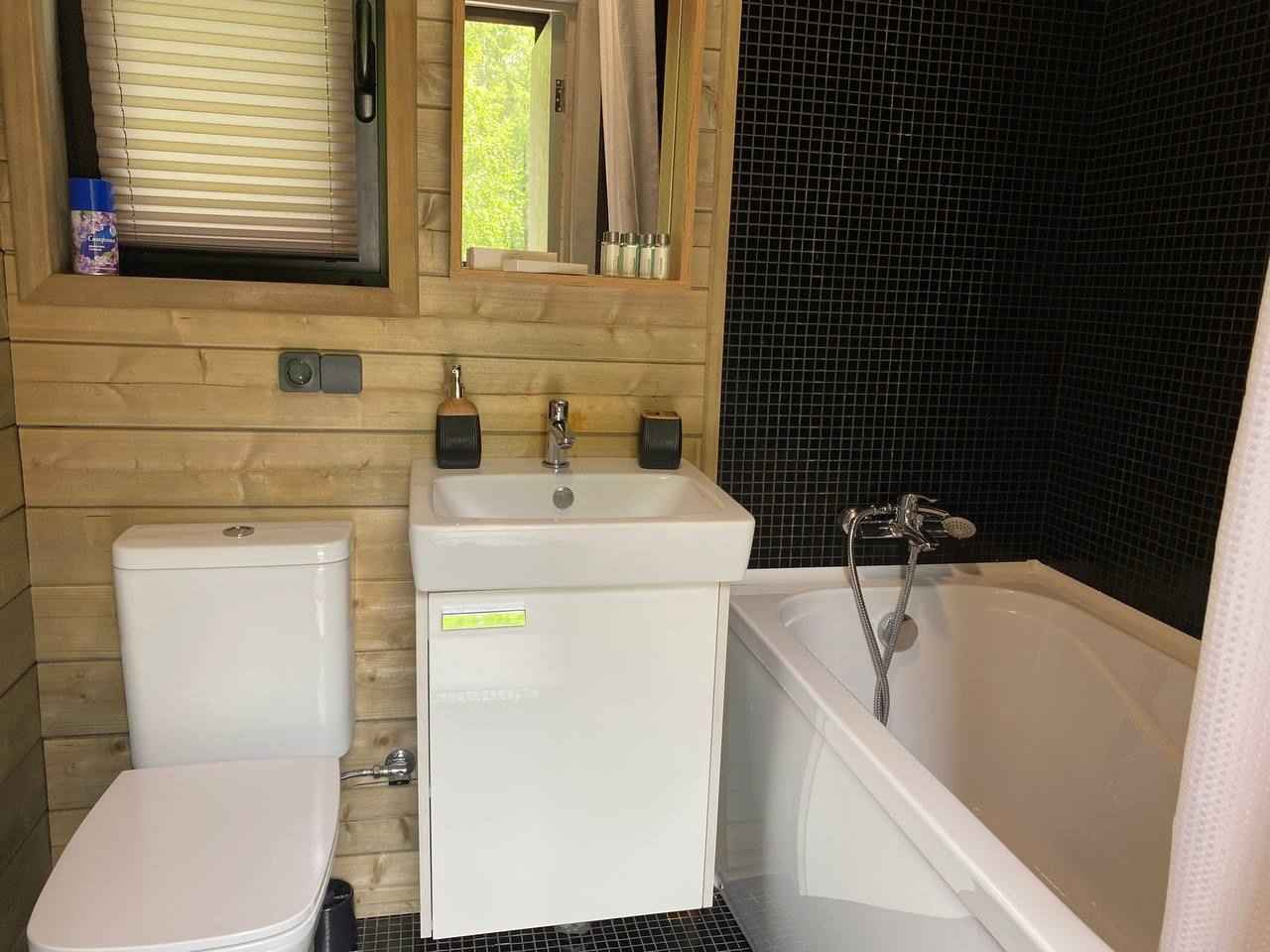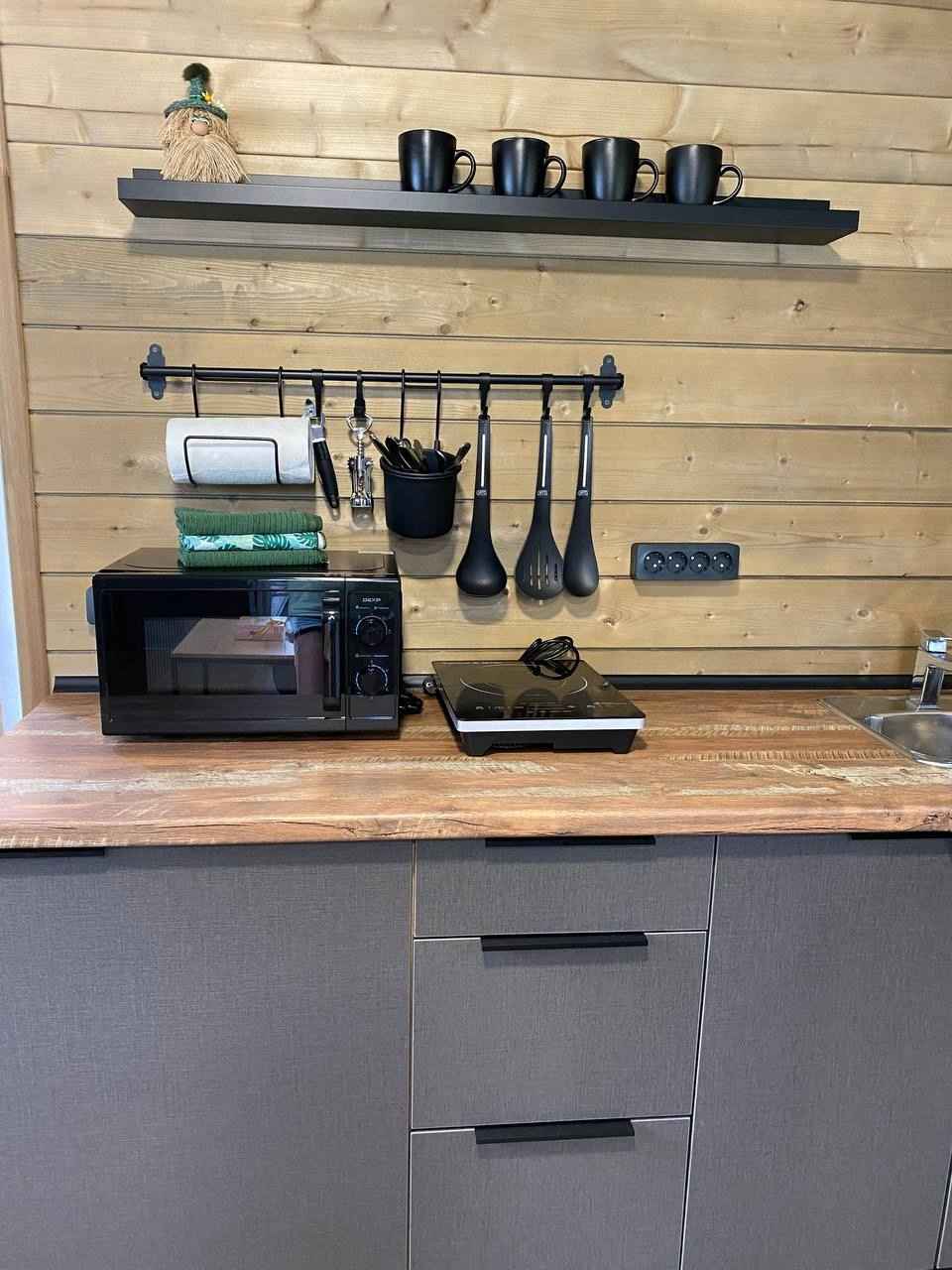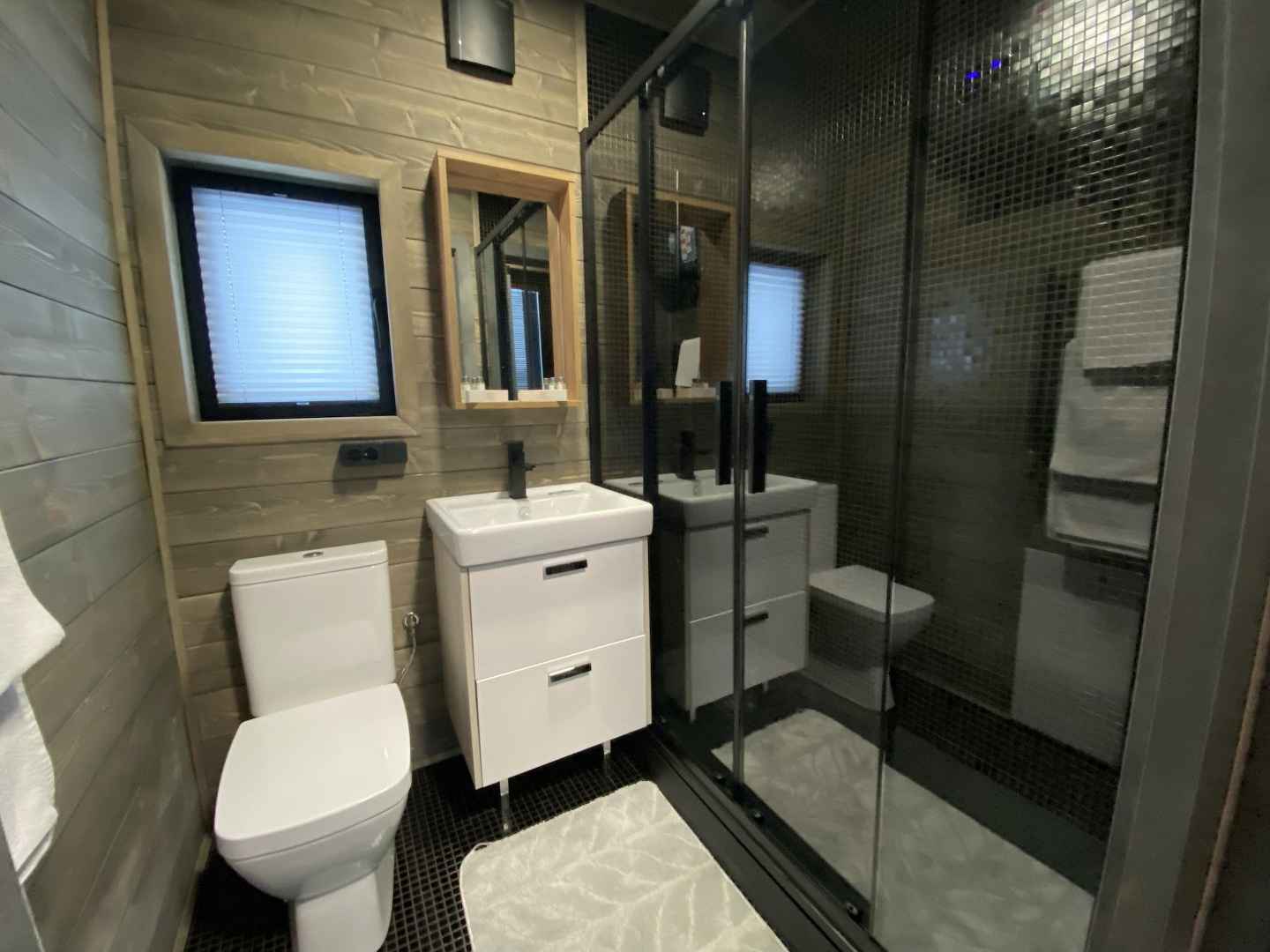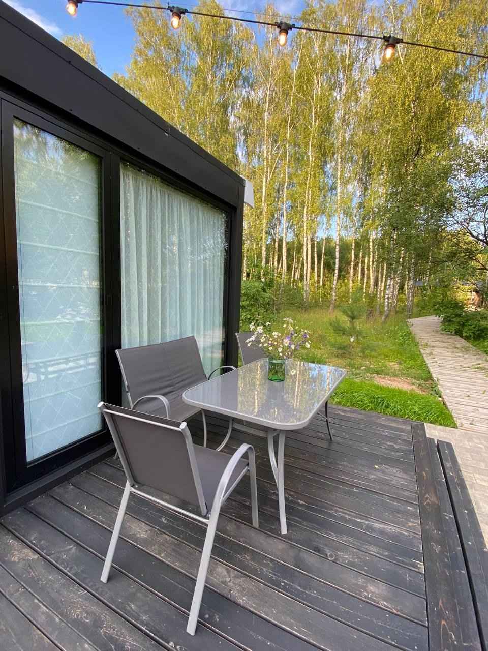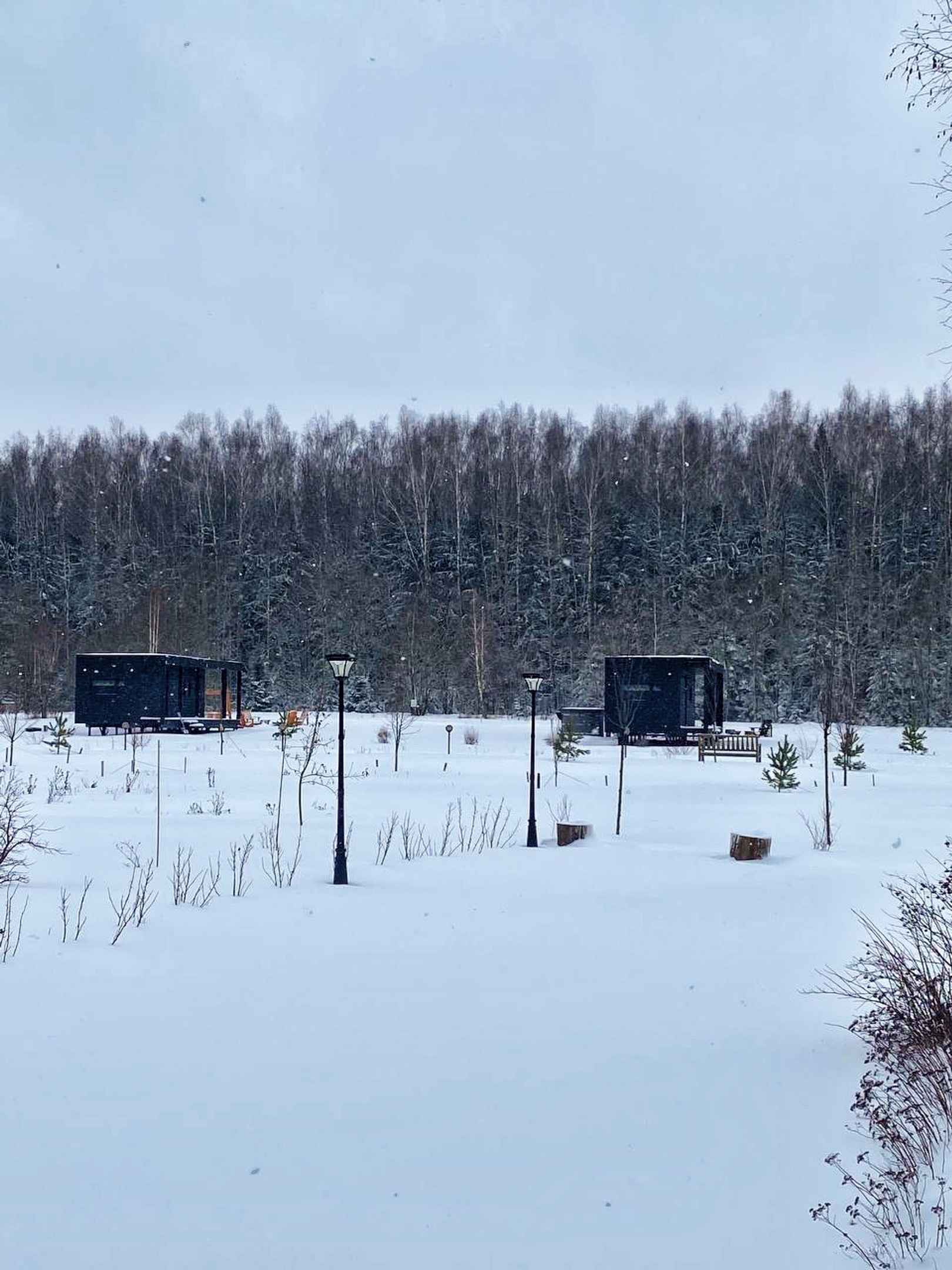 В Усадьбе Ягодное в Липитино для проживания доступны три модульных домика со всем необходимым.