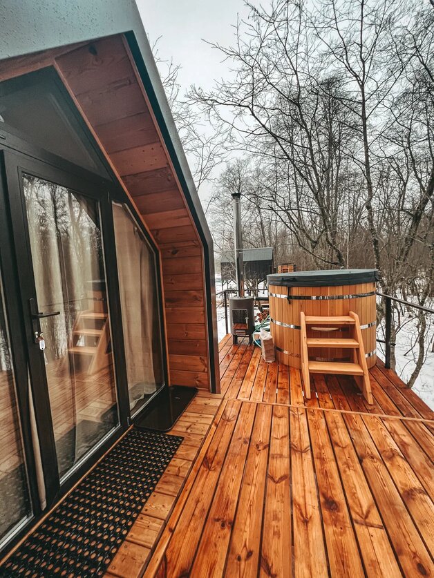 Горячая купель фурако расположена прямо на верхней террасе, среди крон деревьев, чтобы вы могли ощутить, как теплая вода встречается с прохладой ветра или морозным воздухом, вдыхать теплый пар, смешанный с ароматами леса, чувствовать, как расслабляется тело, как вы растворяетесь в невесомости. Чувствовать, что время остановилось. Перед вами звездное небо, тишина и целая Вселенная.