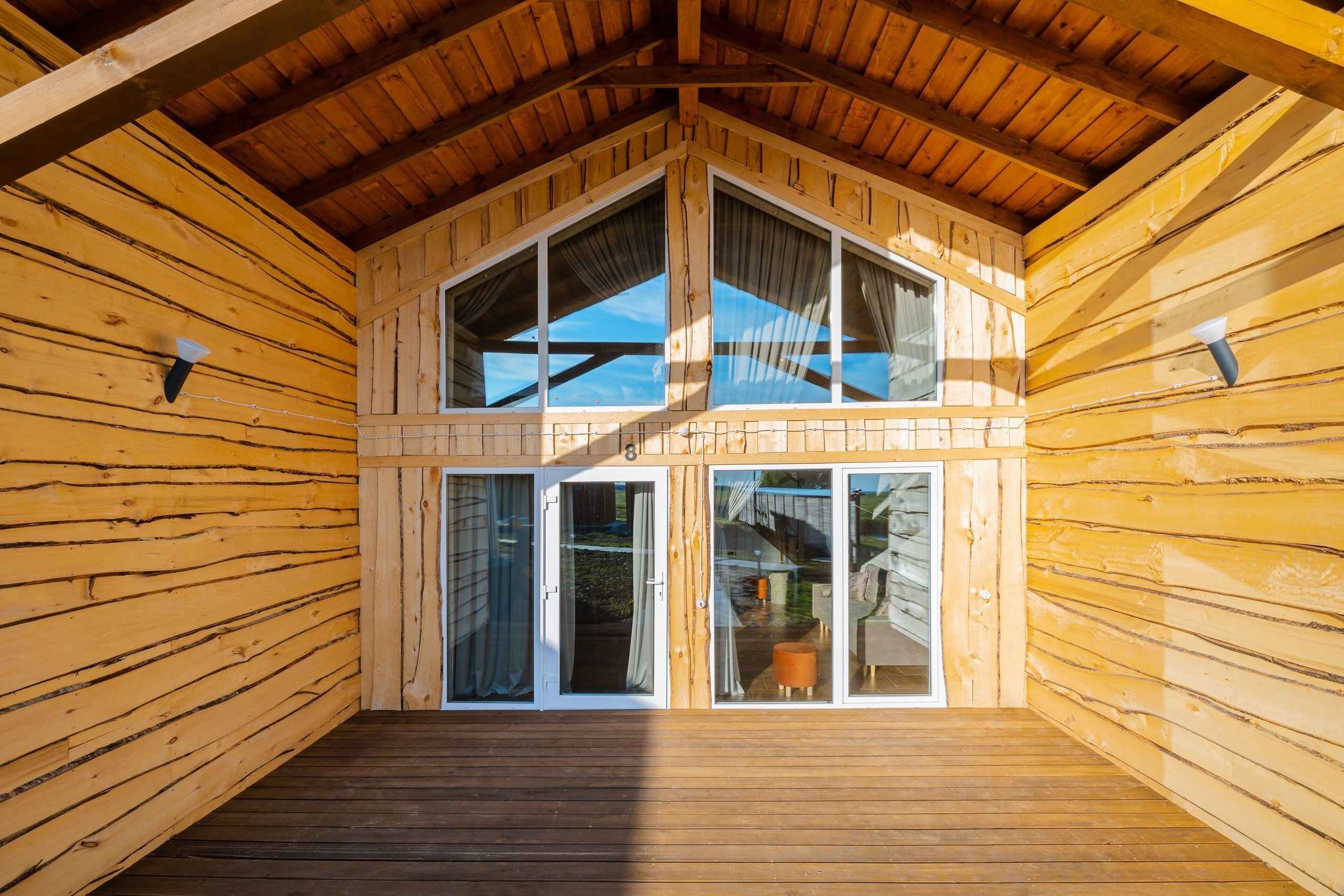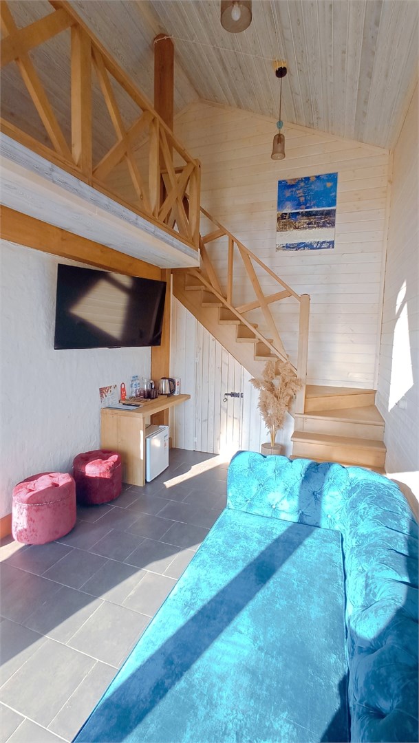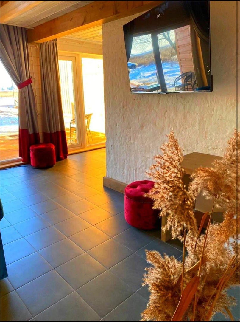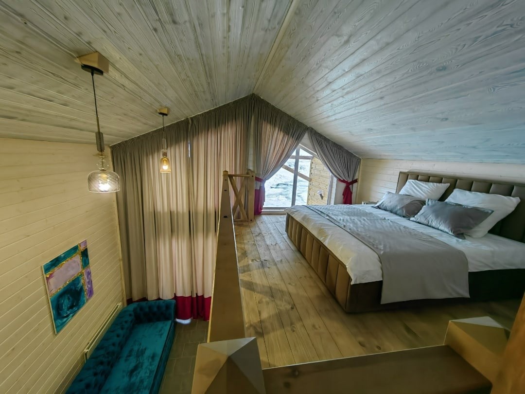 В глэмпинге "Вишня" можно полюбоваться роскошным закатом с бокалом выдержанного вина в руке, сидя на террасе, а потом принять тёплый душ и лечь спать в удобную постель. Мебель ручной работы, итальянские люстры, аромат свежей древесины и регулируемое отопление номера, посещение бассейна и сауны - все к Вашим услугам.