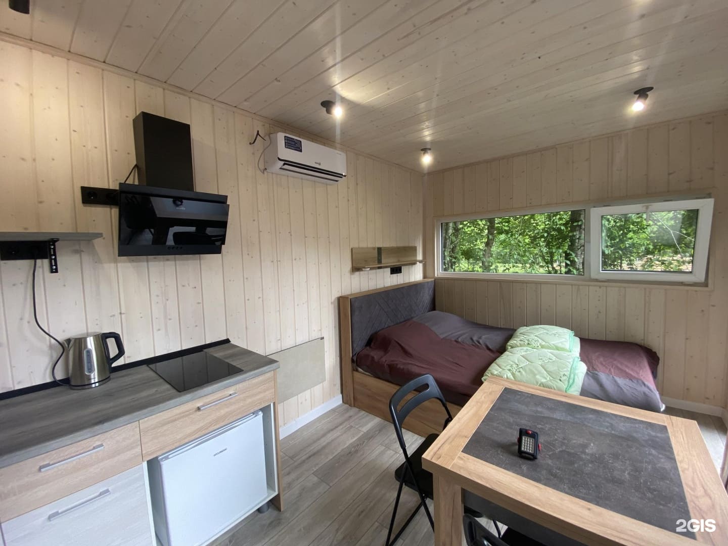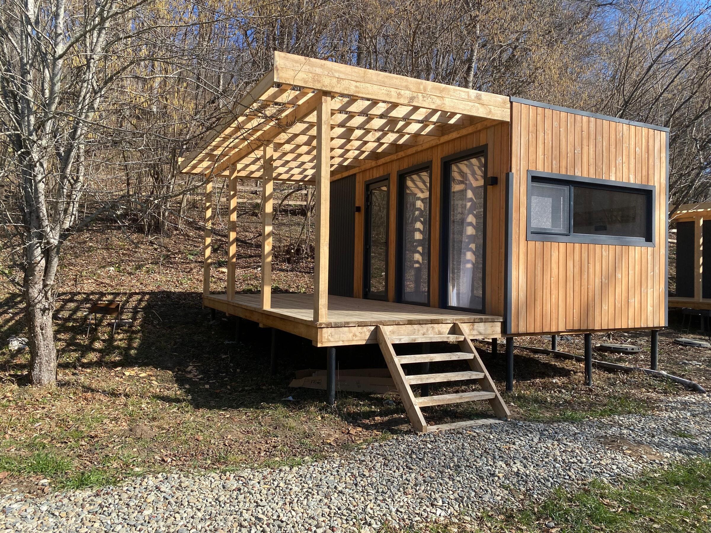 На территории для проживания установлены модульные домики со всем необходимым для комфортного отдыха на природе. Номера в глэмпинге "Высокий берег" расположены друг от друга на таком расстоянии, чтобы гости отдыхали, не беспокоясь за тишину.