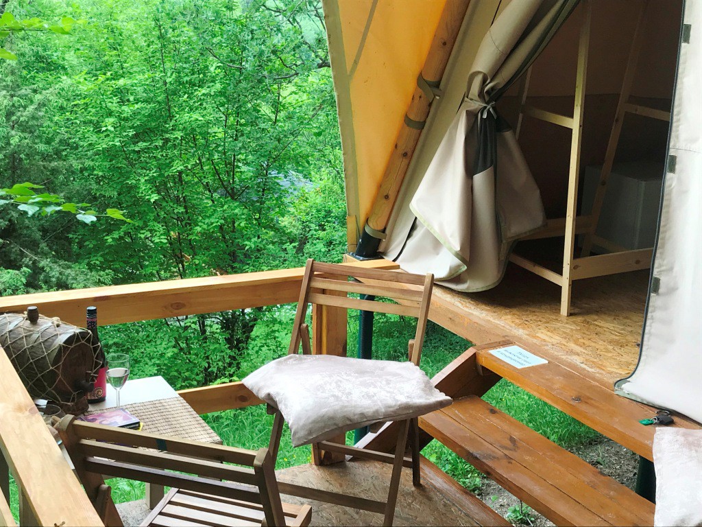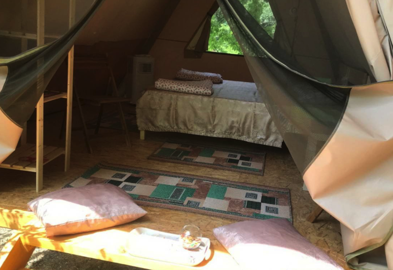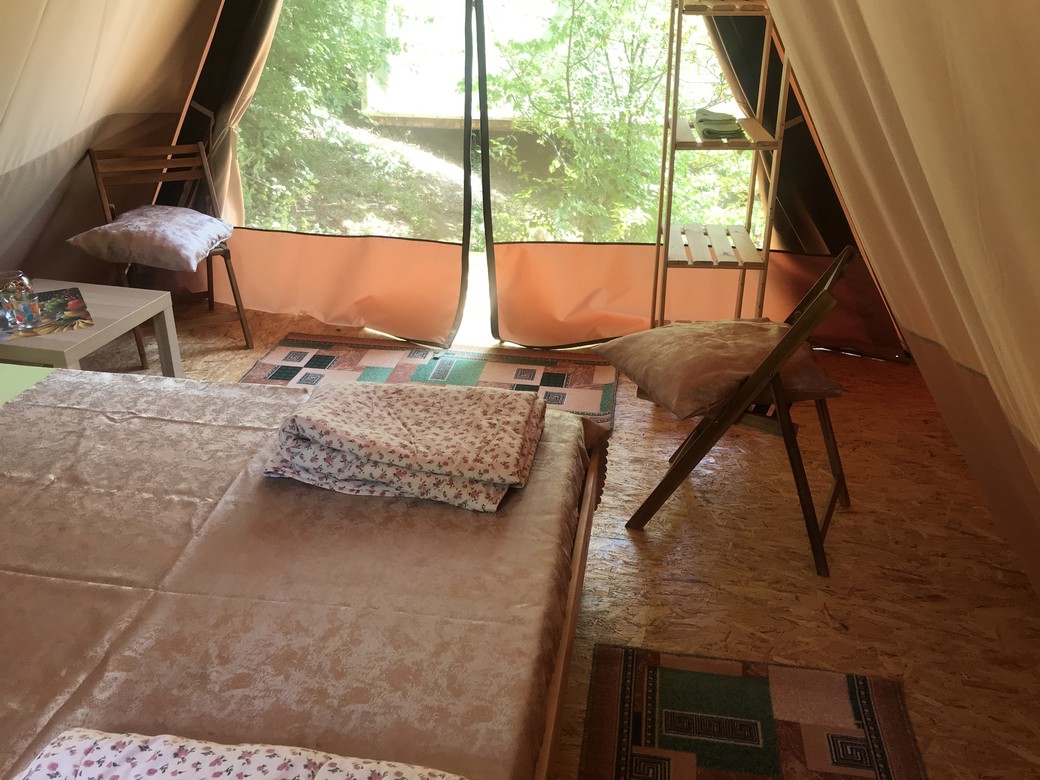 Глэмпинг расположен в 400 м от пляжа Голубая бухта. К услугам гостей бар, общий лаундж и сад. Современная оборудованная зона барбекю (мангал, стол-барбекю для небольшой компании)