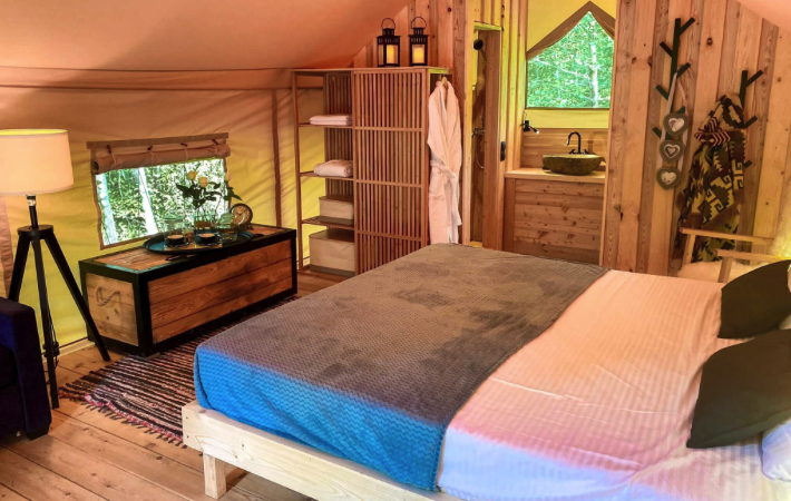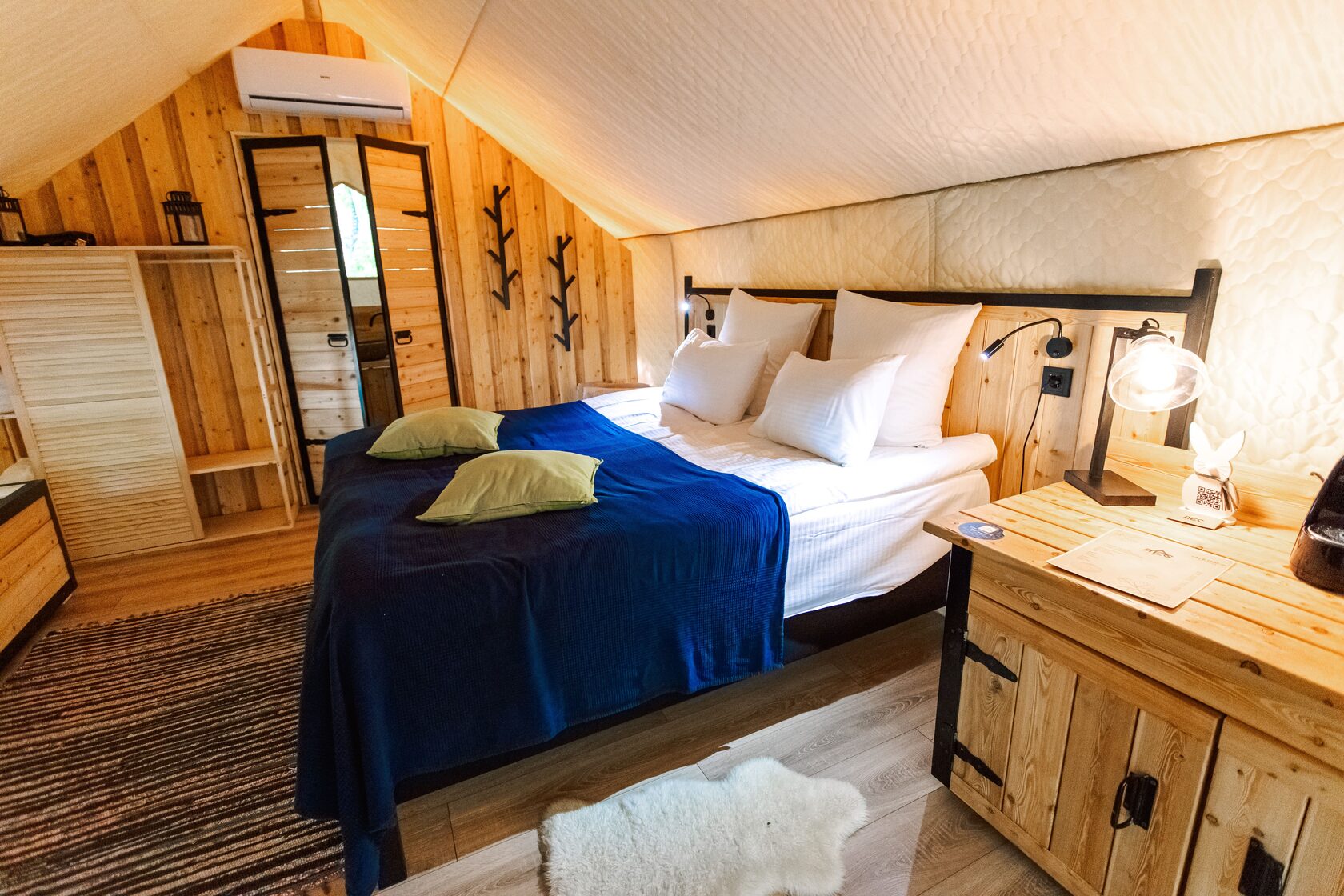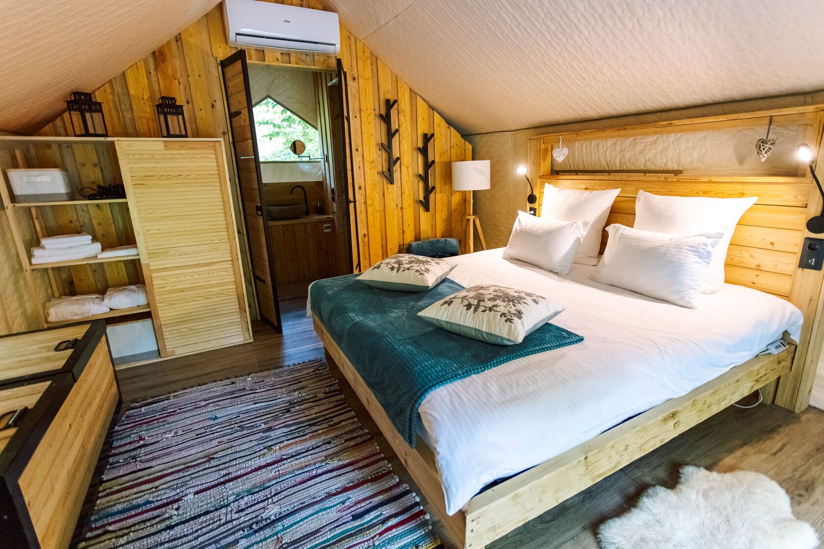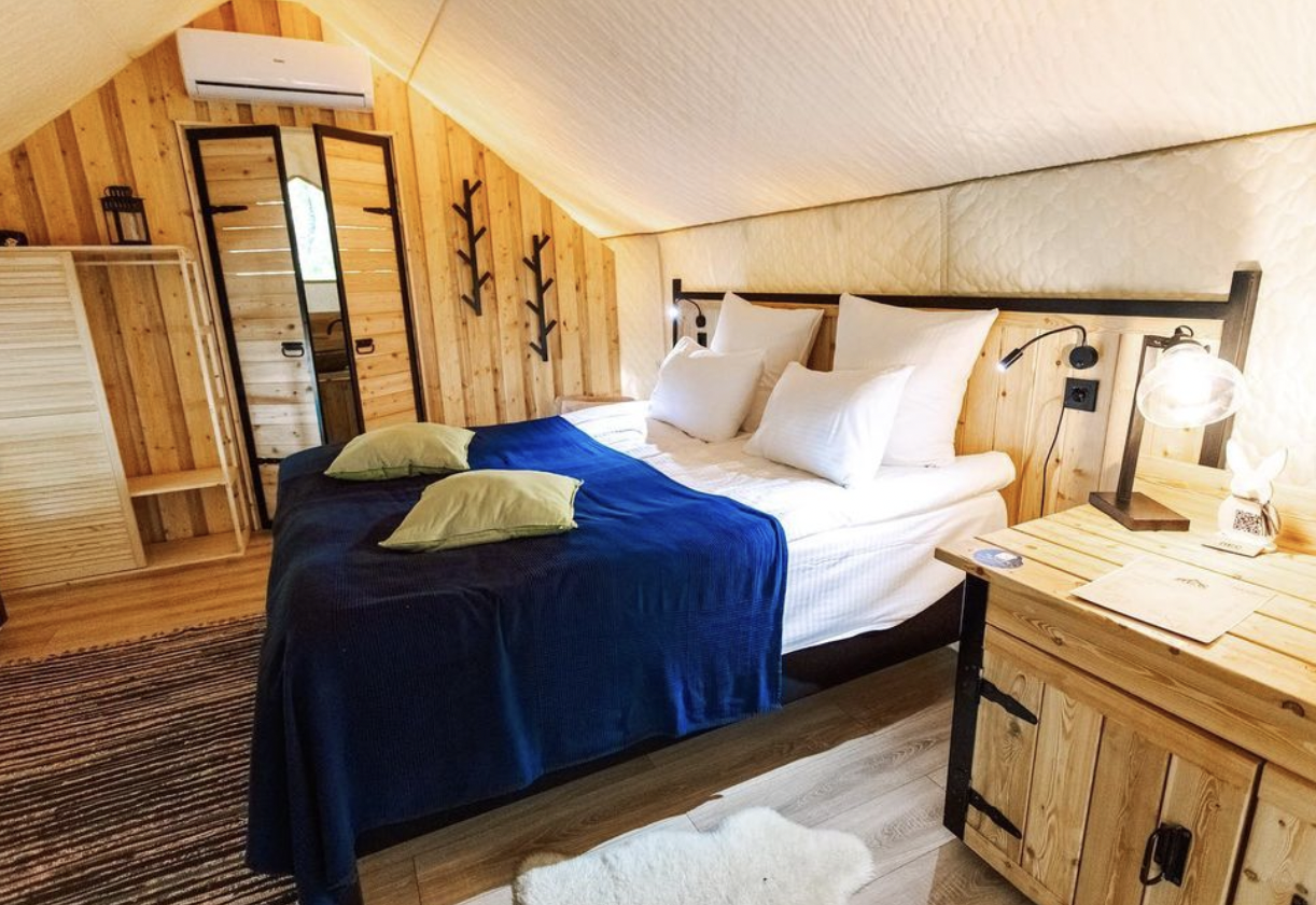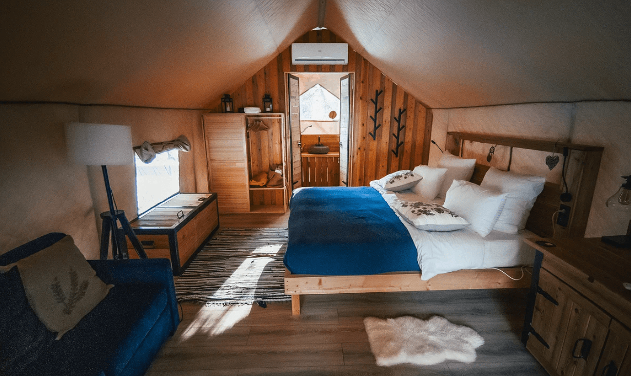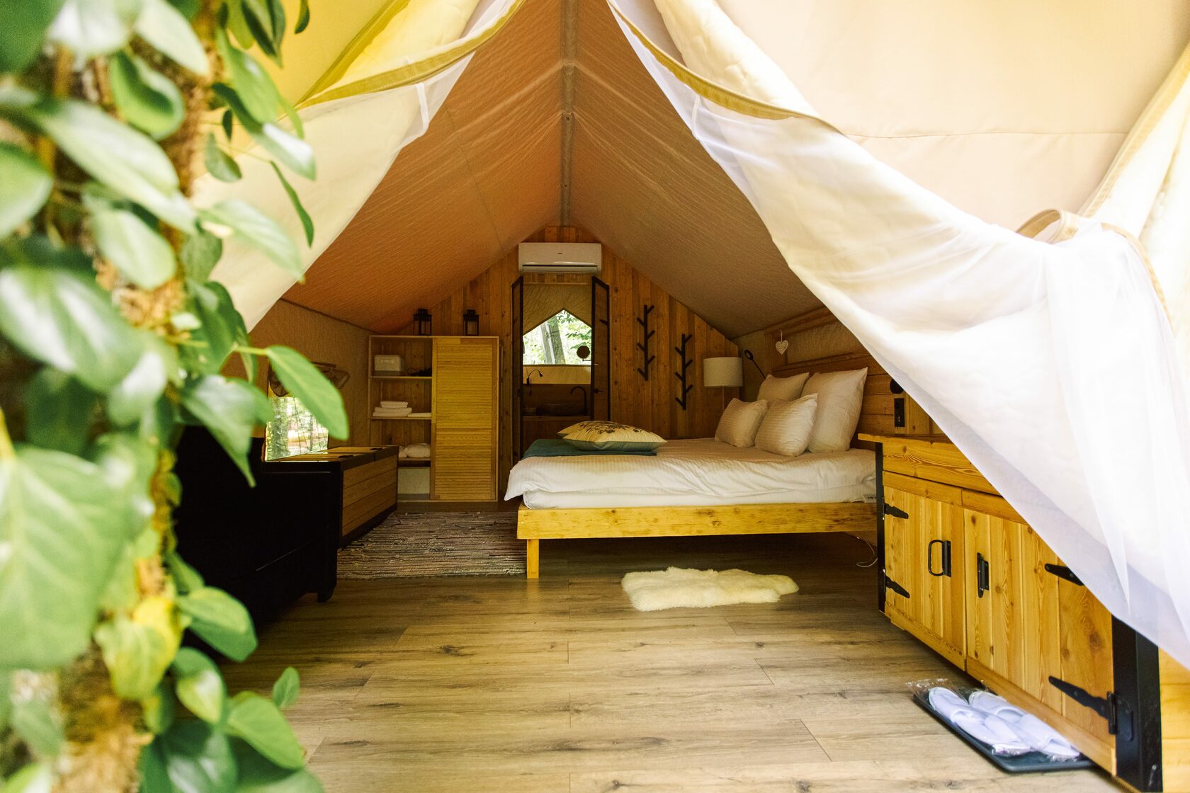 15 уникальных тент-хаусов, подарят вам невероятный комфорт: удобная мебель из натуральных материалом, удобства, кондиционер. Широкая терраса для романтических вечеров и уединённых завтраков.