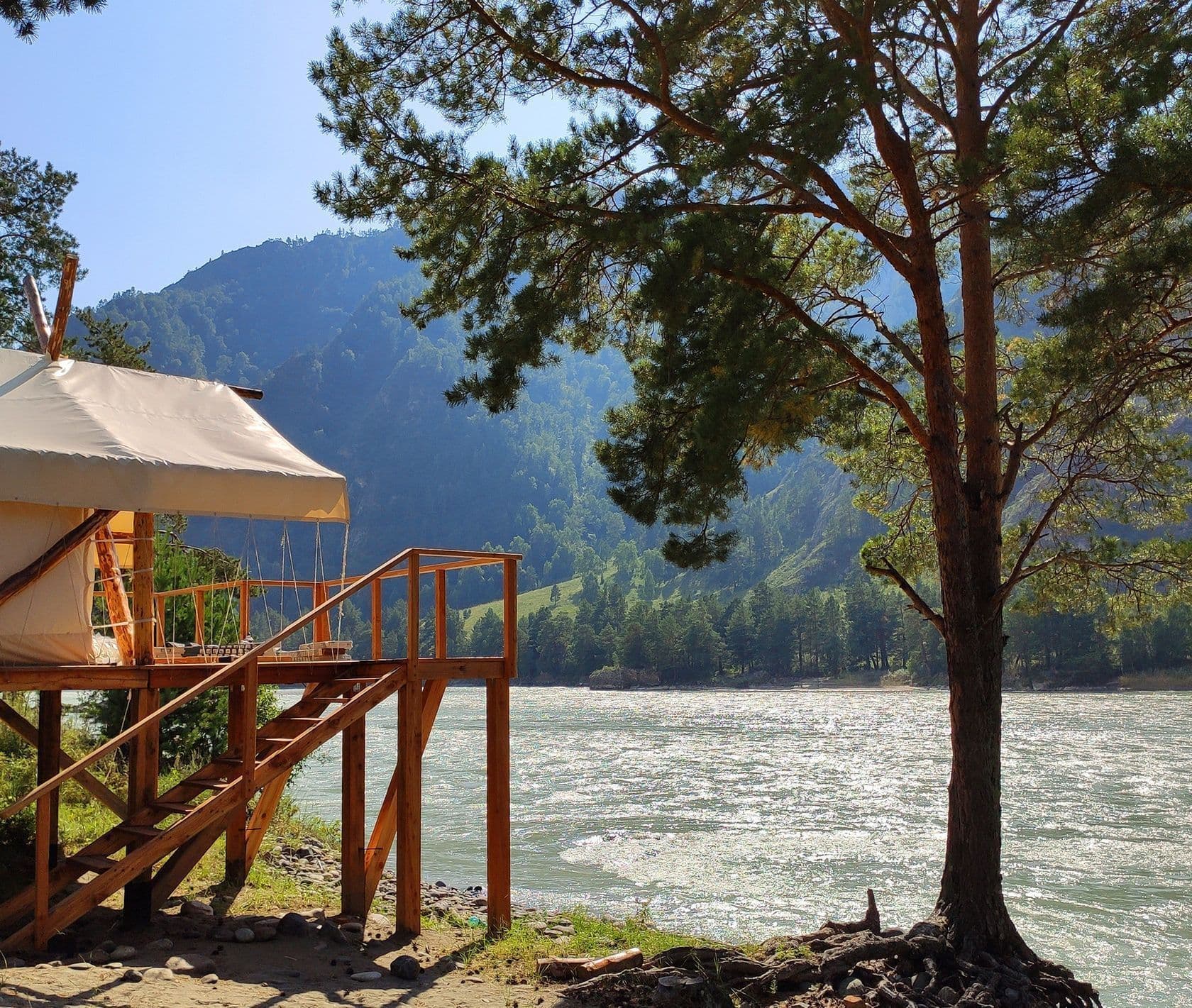 Вас ждет 21 комфортабельный шатер на берегу Катуни, общественные зоны с костровищами, пляж, детские площадки и развлечения на любой вкус. Если вы цените непосредственный контакт с природой и ждёте небольшое приключение — Добро пожаловать в «Айвенго».