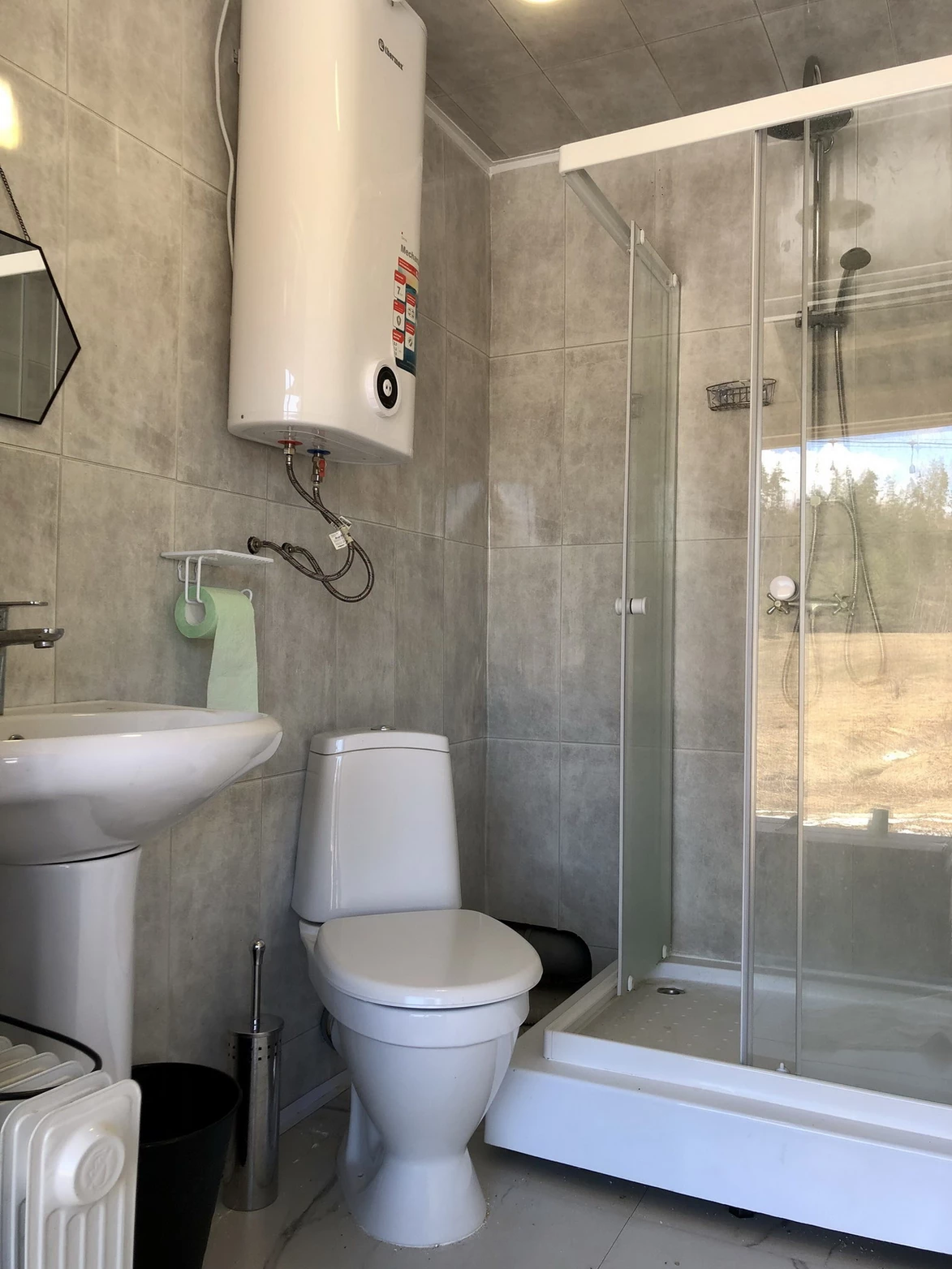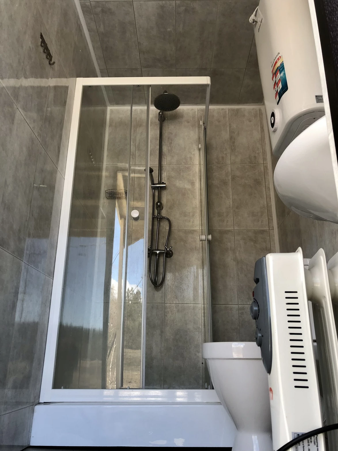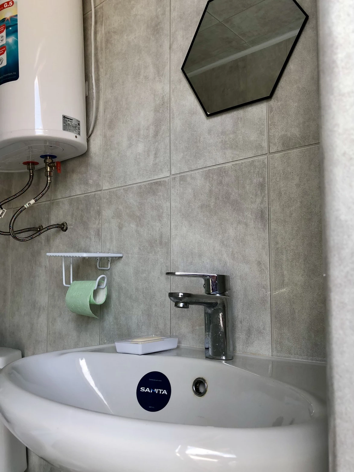 В каждой кабинке есть душевая кабина, керамическая раковина и унитаз унитаз (всё как в отеле, но немного скромнее). Горячая вода 24 часа в сутки!