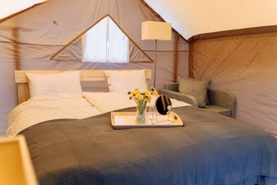 — в каждом сафари-тенте есть обогреватель и электропростыни, а также утепленный пол: проживание в нашем глэмпинге возможно даже при температуре минус 10 градусов (на весенний/осенний период мы делаем дополнительное утепление);