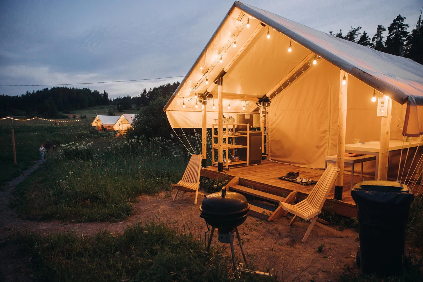 — в каждом сафари-тенте есть 3 розетки для зарядки своих гаджетов;