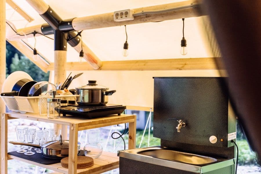 — в каждом сафари-тенте есть мини-кухня, где есть все необходимое для приготовления завтраков, обедов и ужинов: