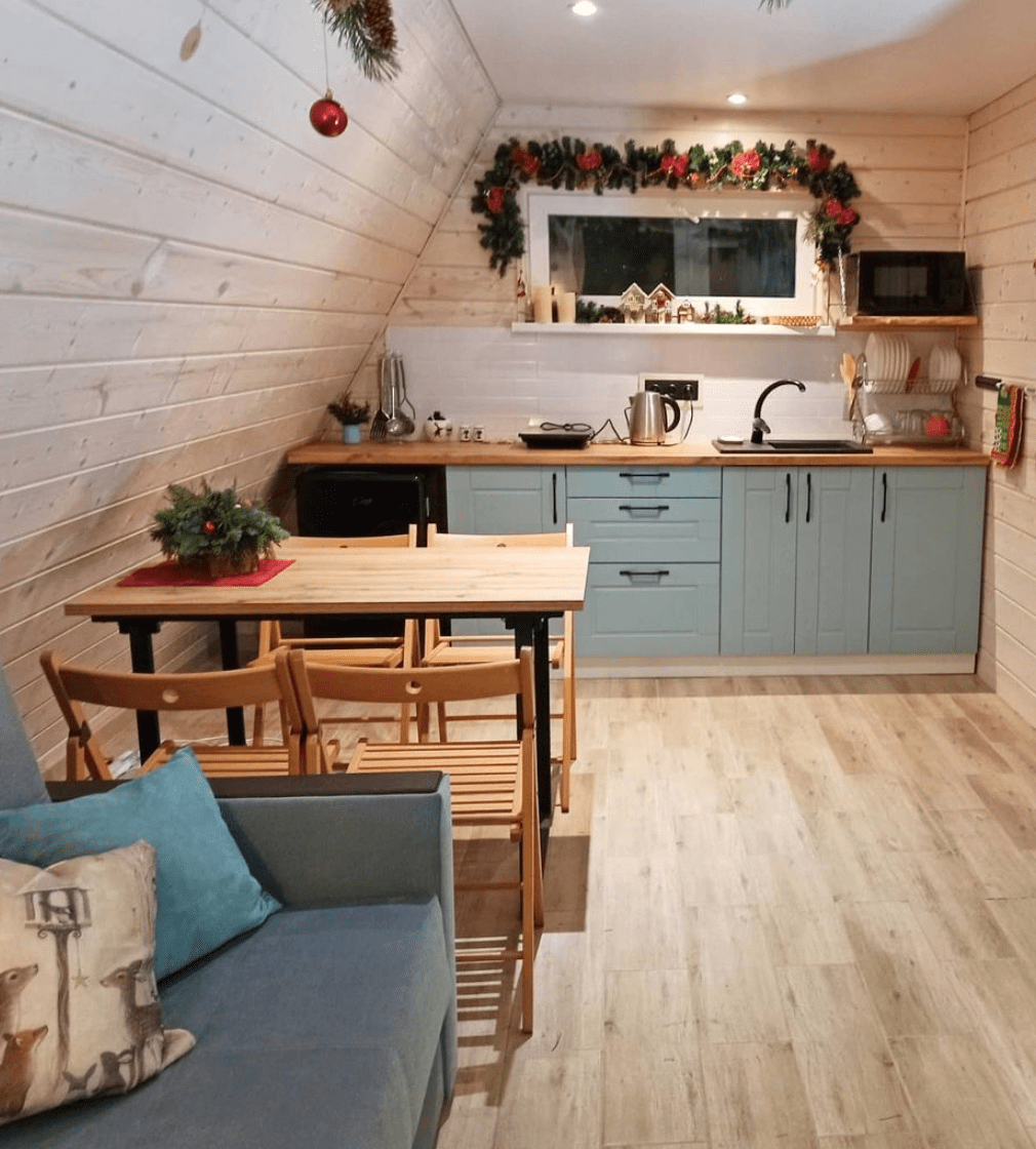 Стильные уютные домики с открытой террасой. Для тех, кто любит природу, панорамные окна и комфорт. В каждом домике: