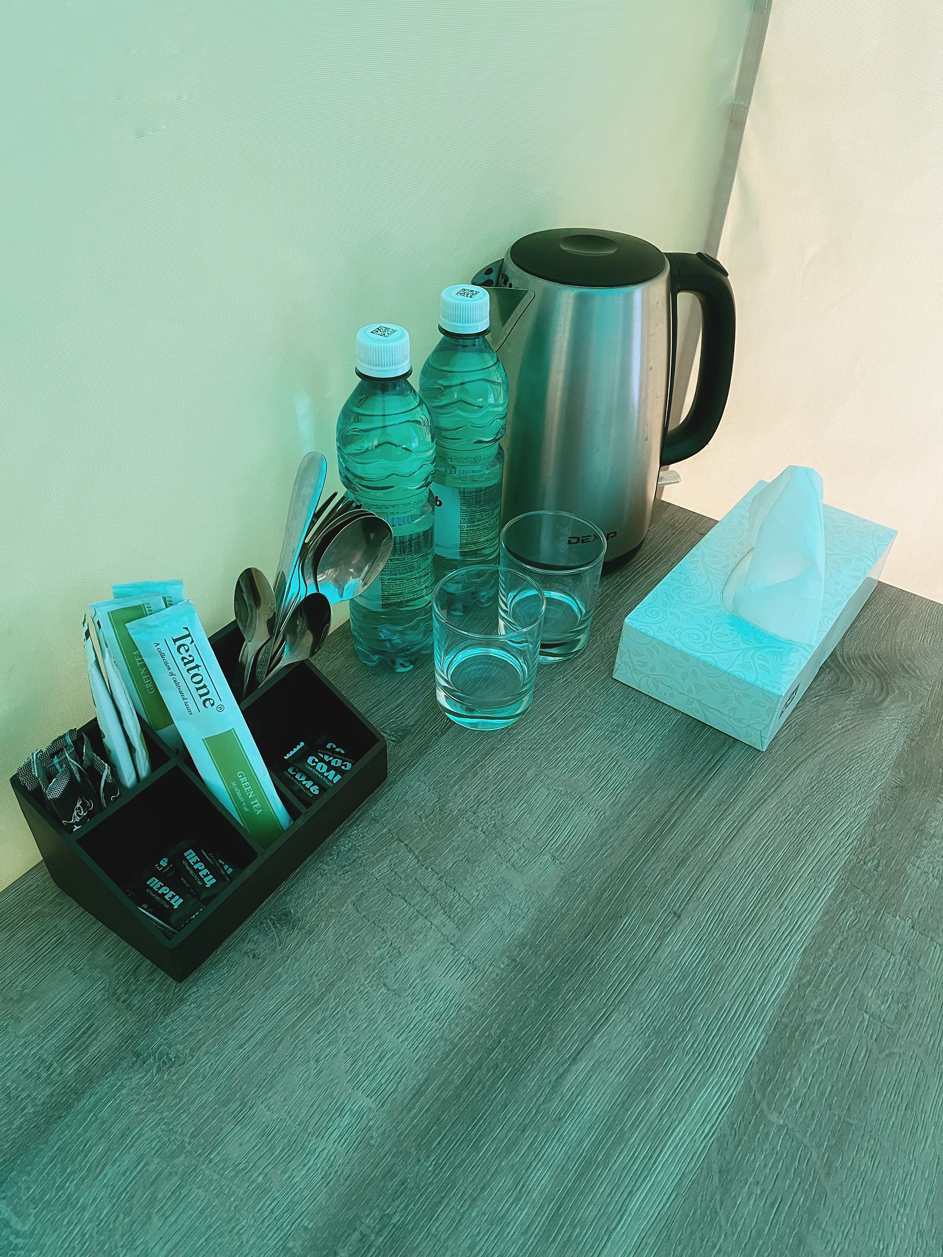 Посуда на 2-3 человек (стаканы, бокалы, кружки, тарелки, пиалы, приборы).
