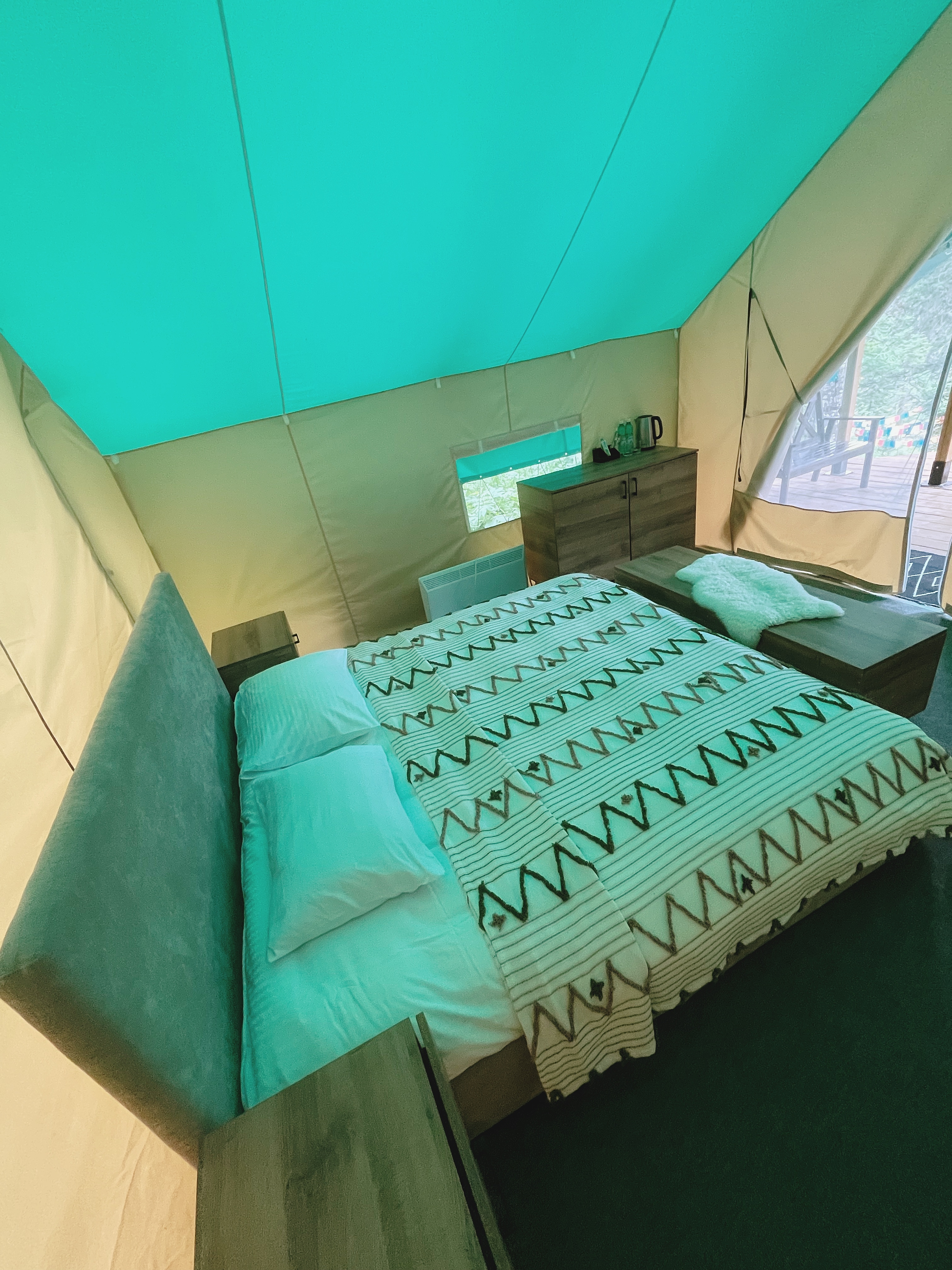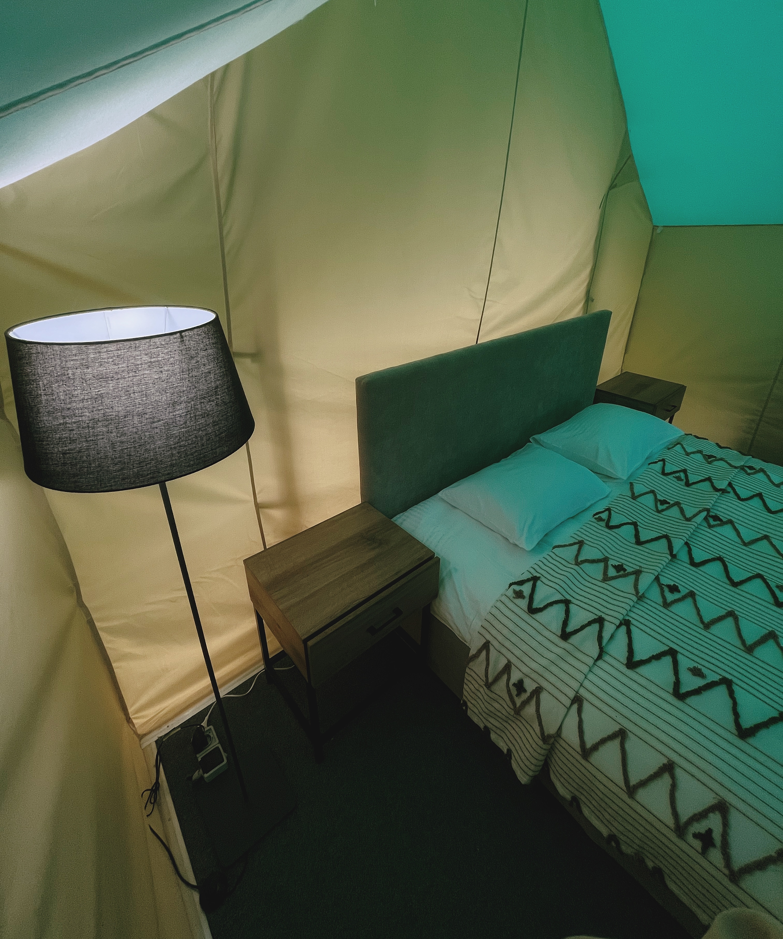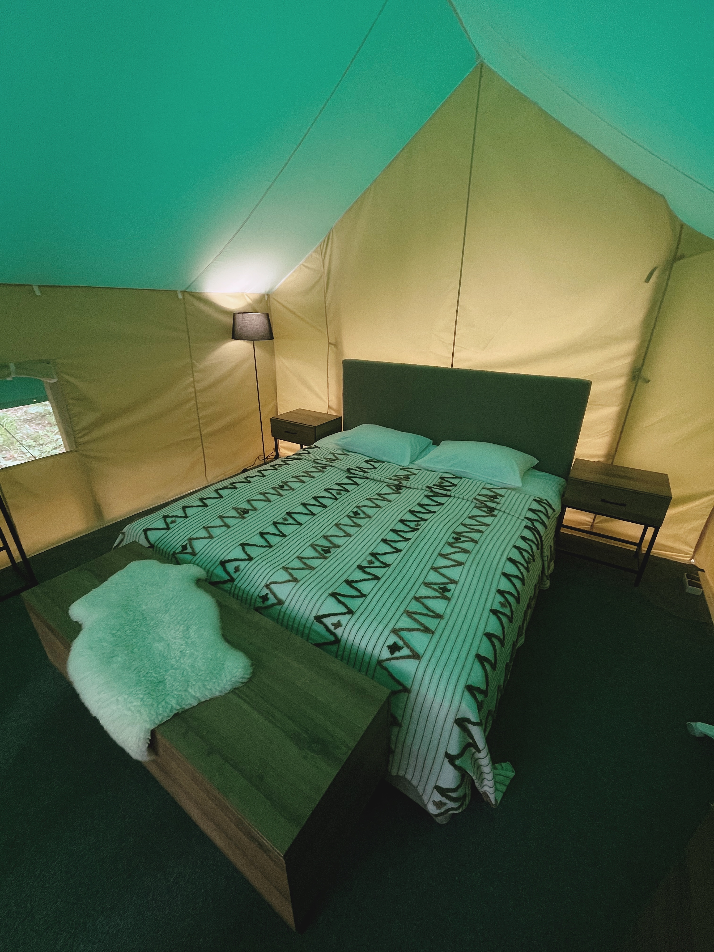 На Секторе Е расположились 10 тент-хаусов с двуспальной кроватью или двумя односпальными. В каждый можно добавить доп.место.