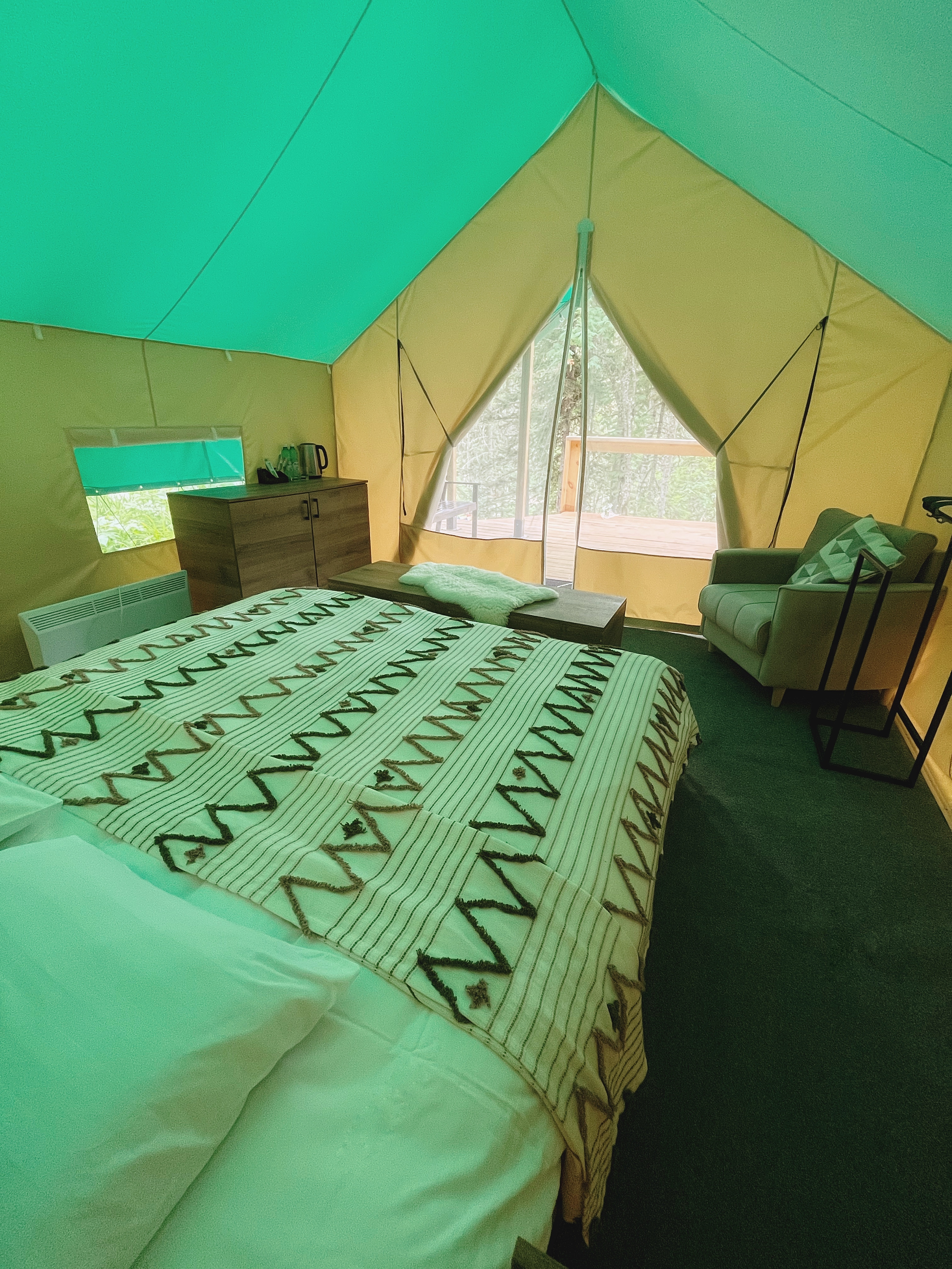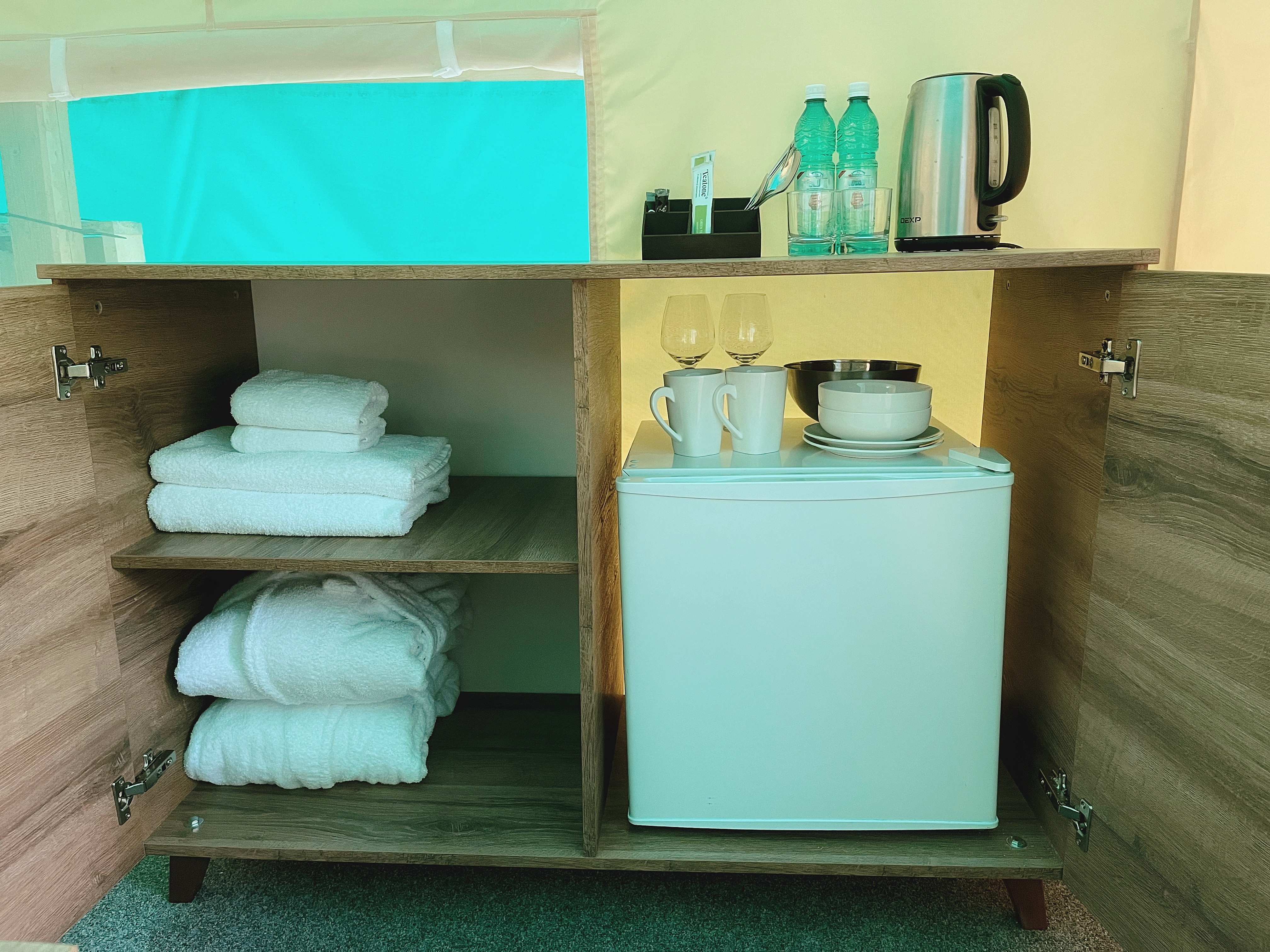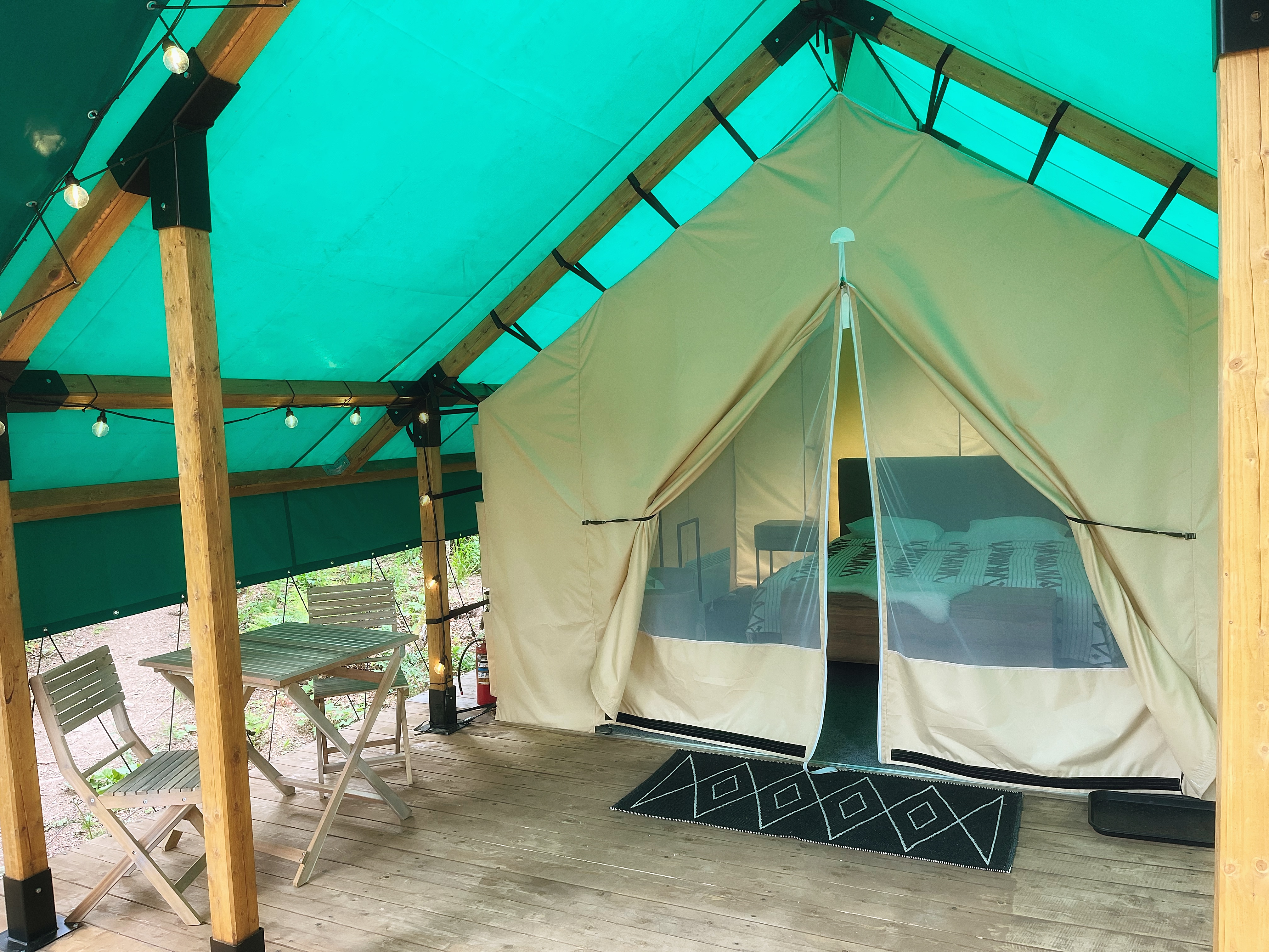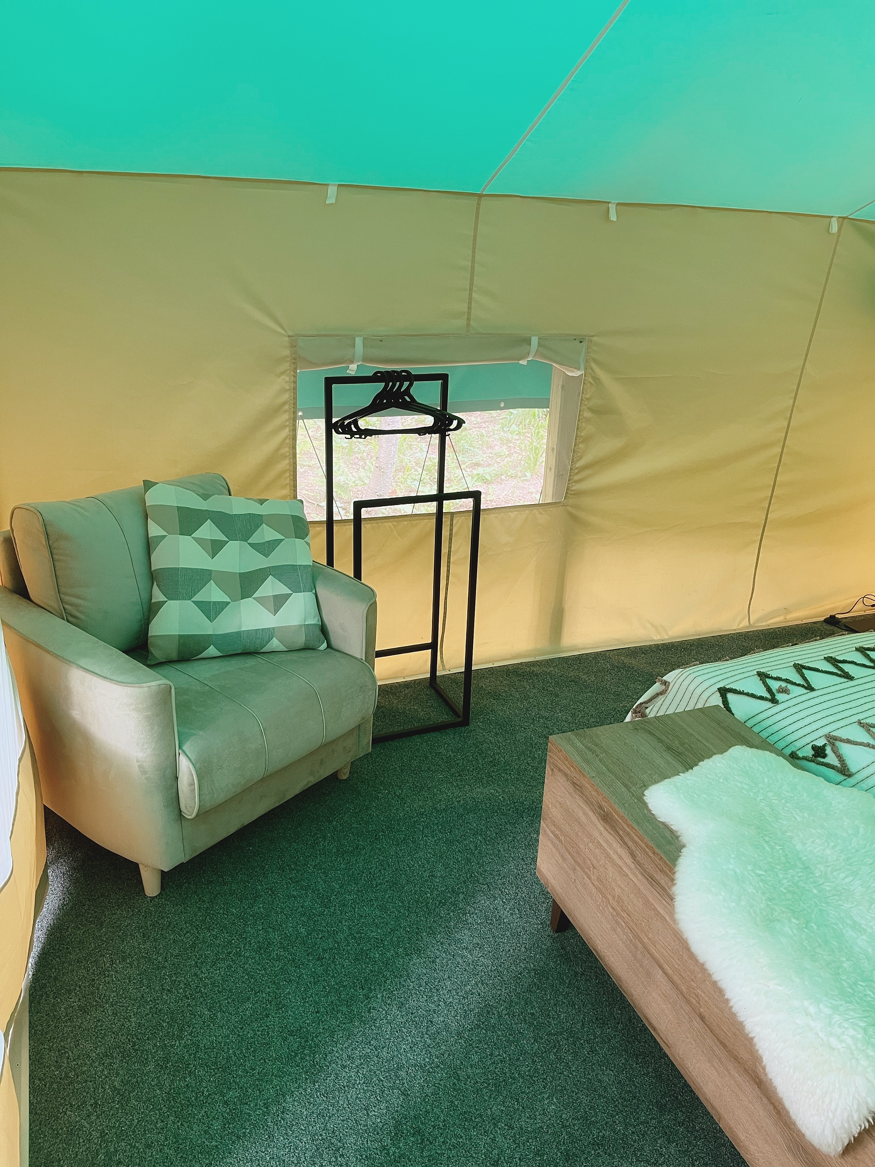 На Секторе Е расположились 10 тент-хаусов с двуспальной кроватью или двумя односпальными. В каждый можно добавить доп.место.