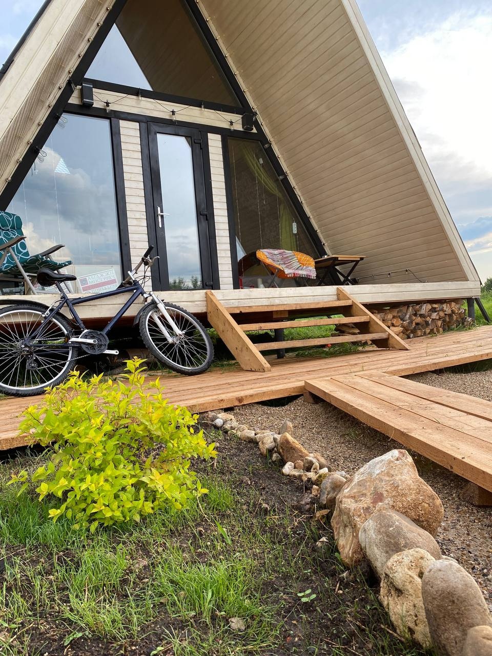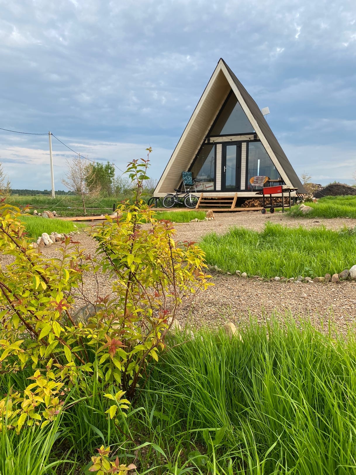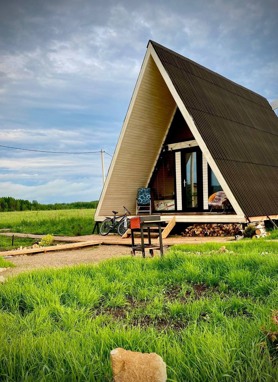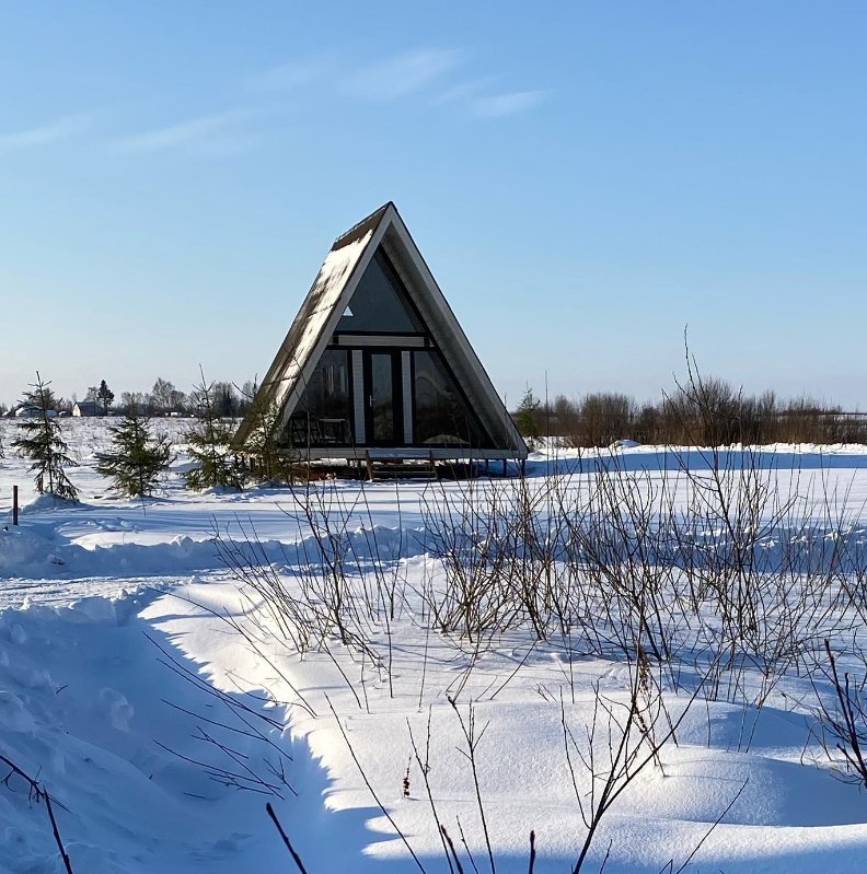 Дом-шалаш (А-фрейм) в глуши прямо на берегу Вазузского водохранилища.