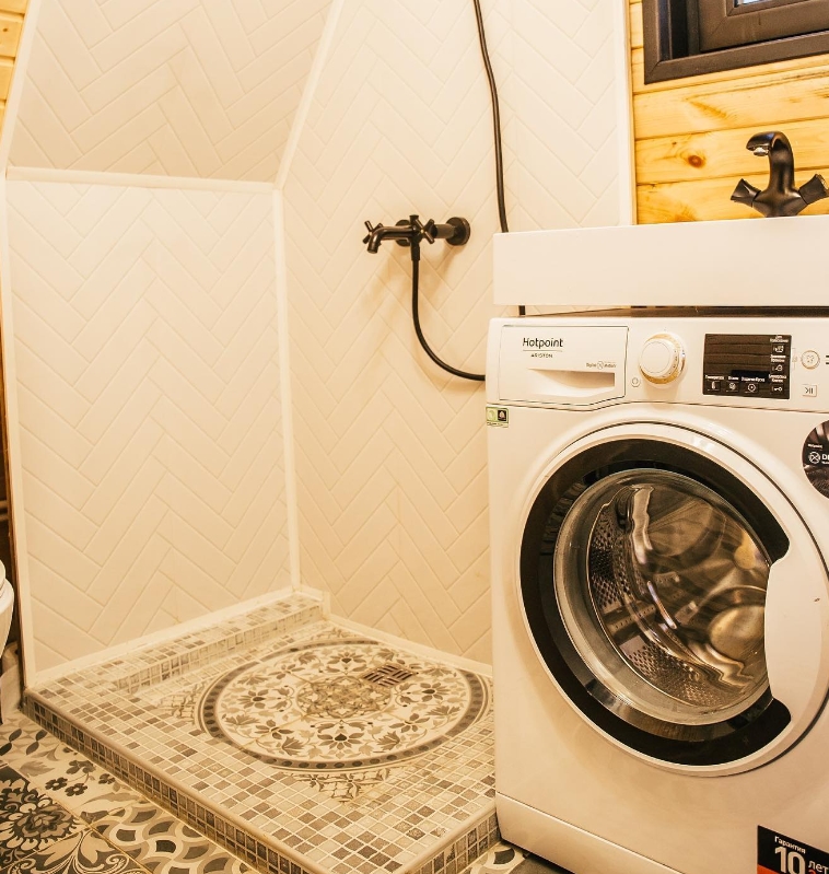 - Техника: холодильник, плита, микроволновка, стиральная машина, водонагреватель, телевизор, фен