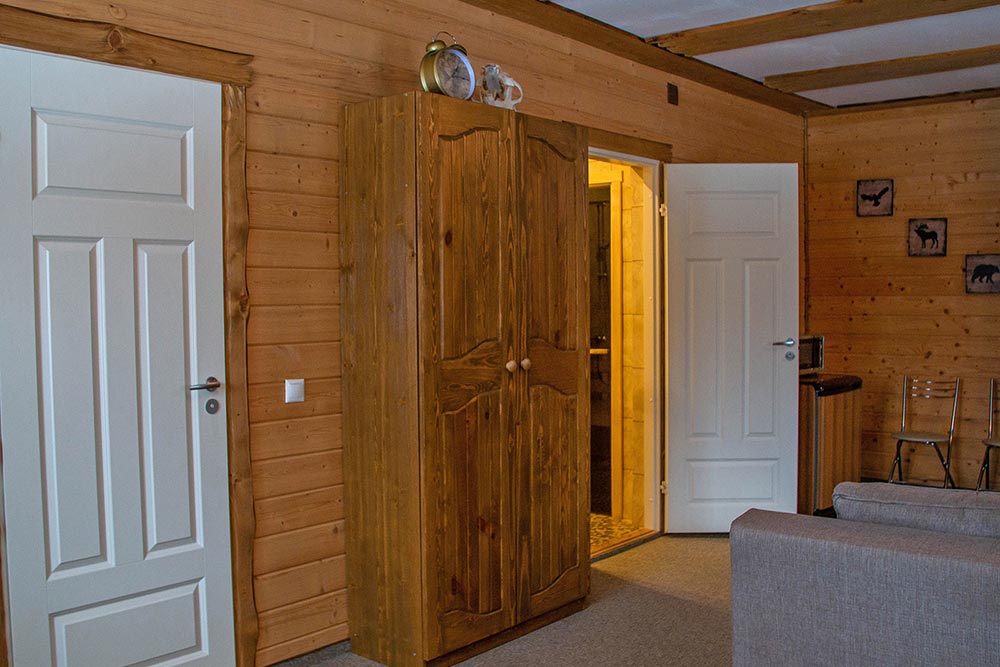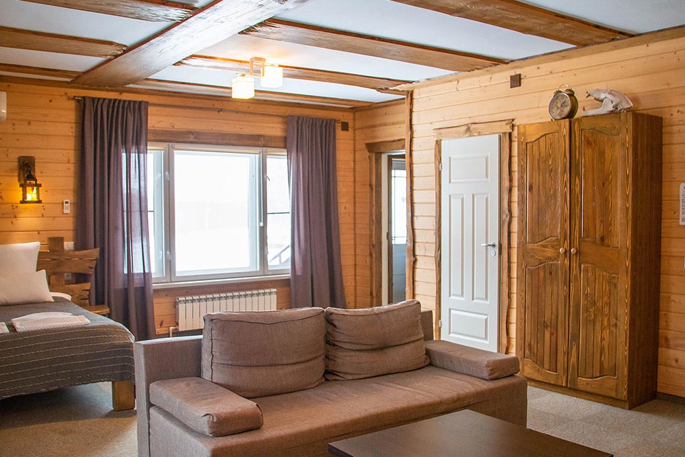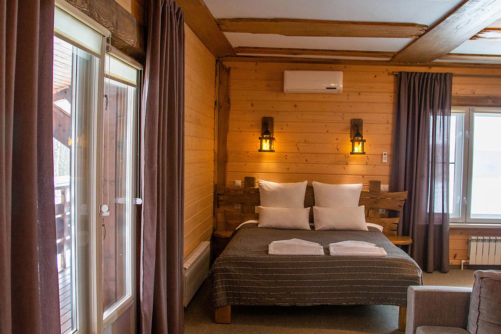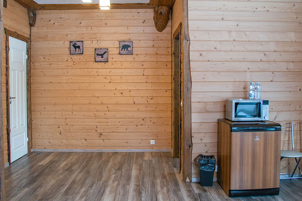 Как и во всех наших номерах здесь есть душевая комната, большие окна с видом на лес и все необходимое для комфортного проживания, включая wi-fi.