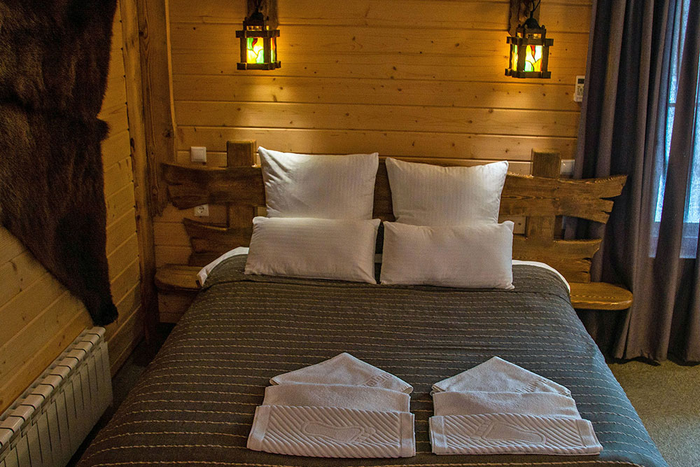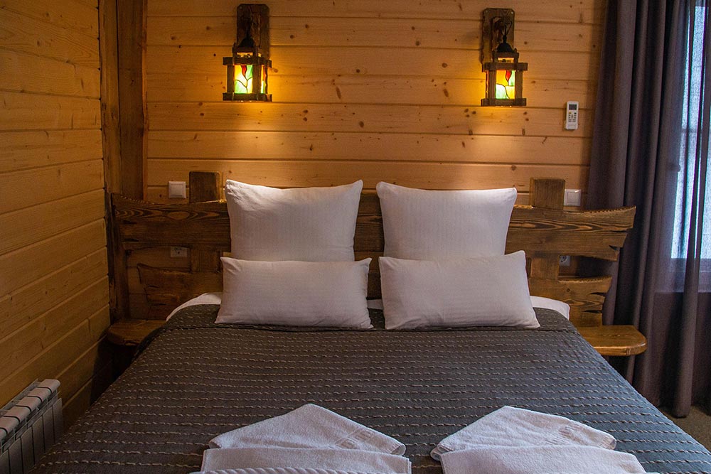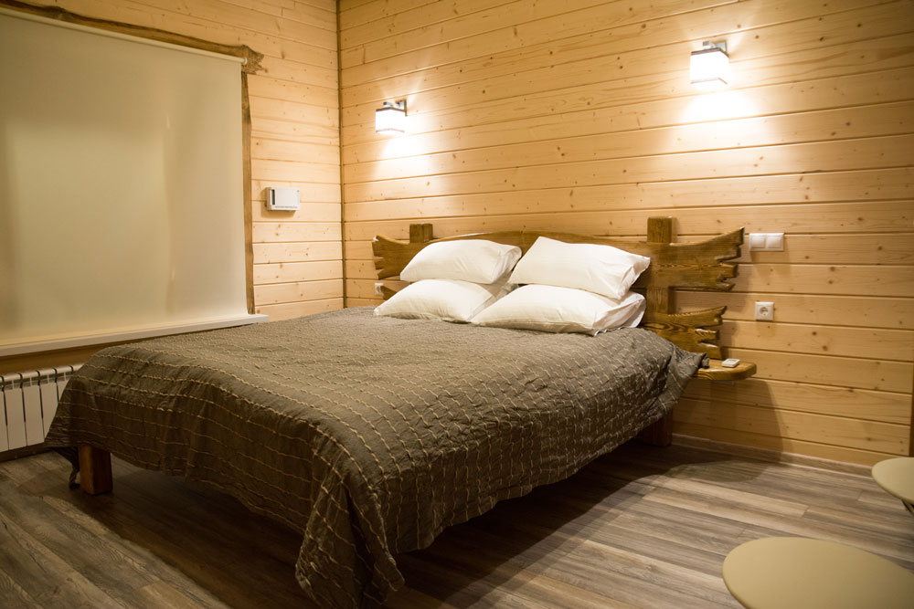 Дизайн комнат стилизован под фермерское хозяйство, но в каждом помещении неизменно присутствуют атрибуты современной комфортной жизни. Мягкие белоснежные перины на кроватях, деревянная мебель и теплое освещение создают ощущение уюта и спокойствия.