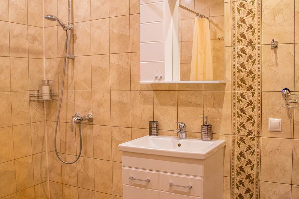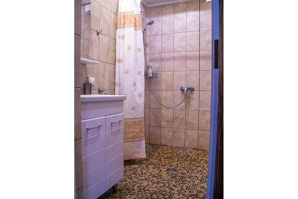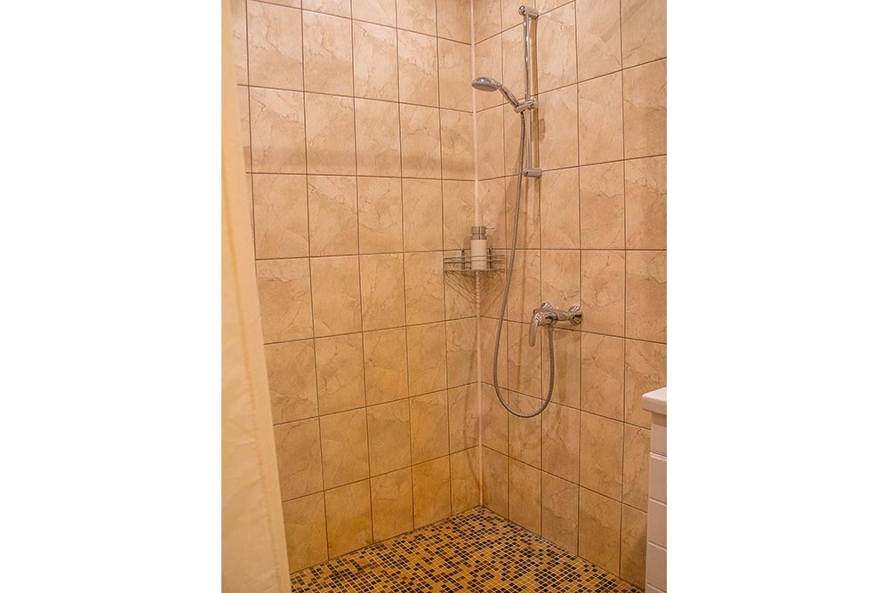 Этот номер находится на первом этаже. Вход отдельный, осуществляется непосредственно с улицы - с небольшой террасы. В номере две комнаты: спальня с большой кроватью и гостиной с раскладным диваном на два человека.