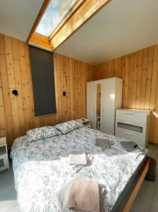 - Двуспальная кровать с удобным матрасом, одеялом, подушками, постельным бельем, полотенцами