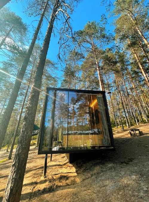 GREENVALD Парк Скандинавия расположен на двух берегах озера Радужное и лесной реки у подножья горы Высокая в сосновом лесу и одном из самых живописных мест Ленинградской области. Круглый год здесь можно остановиться всей семьей в стильных, уютных, оборудованных теплыми полами, WiFi, телевидением, бытовой техникой, посудой и мангалами домиках и коттеджах с панорамными окнами и террасами на озеро, реку или сосновый лес или провести семейное торжество в утеплённых гриль-домах, павильонах на берегу для шашлыка, порыбачить, сходить в русскую баню на дровах, сауну, посетить веревочный парк, скалодром, лучно-арбалетный тир, взять на прокат САПы, лодки, байдарки, велосипеды, рыболовный и спортивный инвентарь и поужинать в ресторане с видом на озеро и скандинавской кухней. Летом и теплой весной / осенью Вы также можете забронировать проживание в глэмпинге - просторных сафари-тентах или уютных типи на настиле с двуспальной кроватью, шикарным видом, электричеством и включенными завтраками в ресторане.