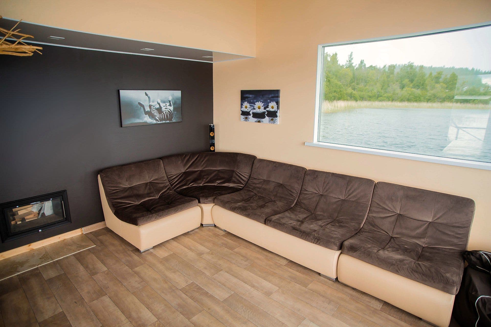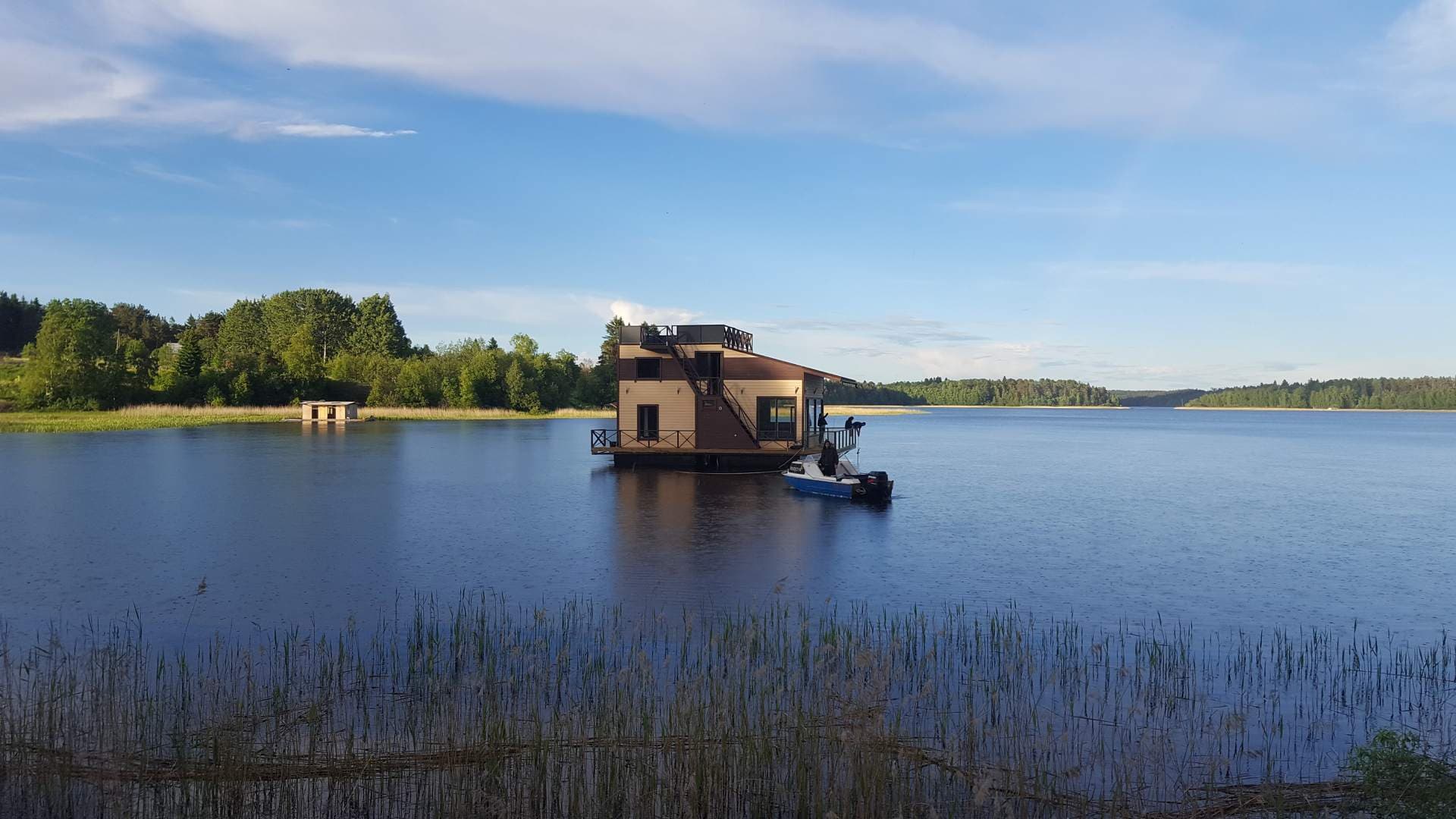 Новый Плавающий дом 2021 года постройки. Трехпалубный плавающий дом CliffHouse ("Дом у утеса") - один из самых больших и комфортабельных хаусботов Карелии.