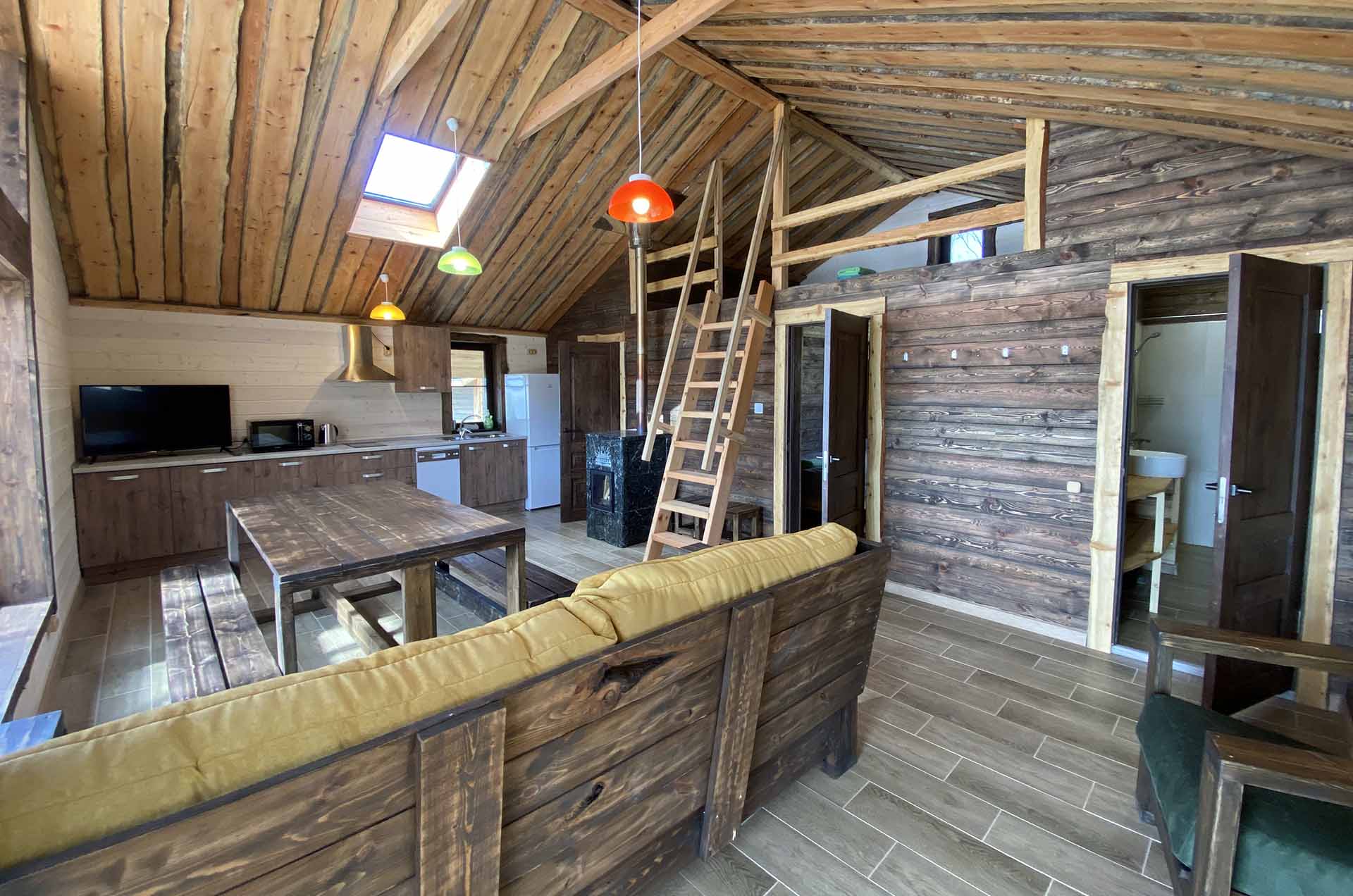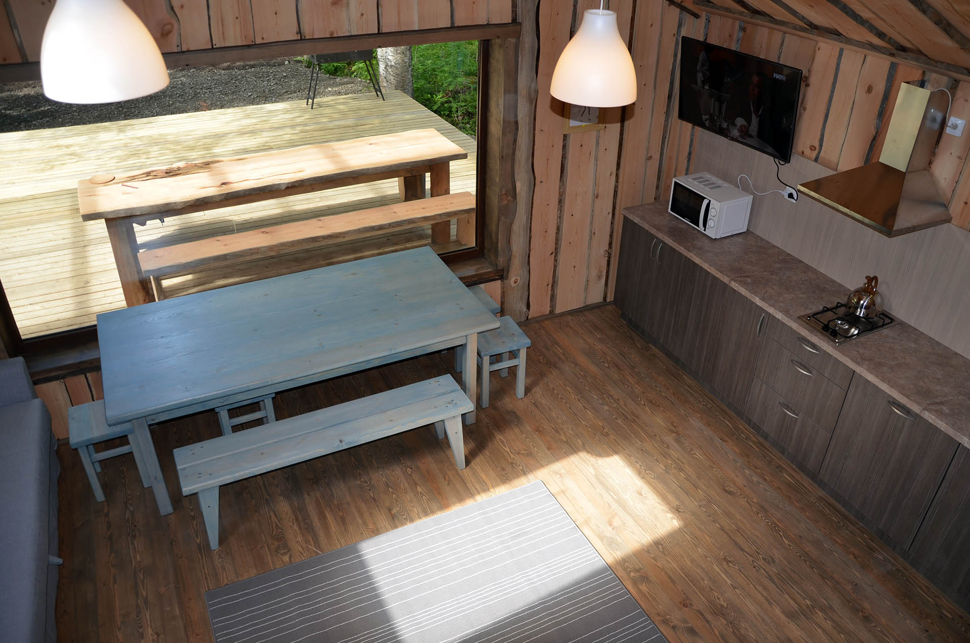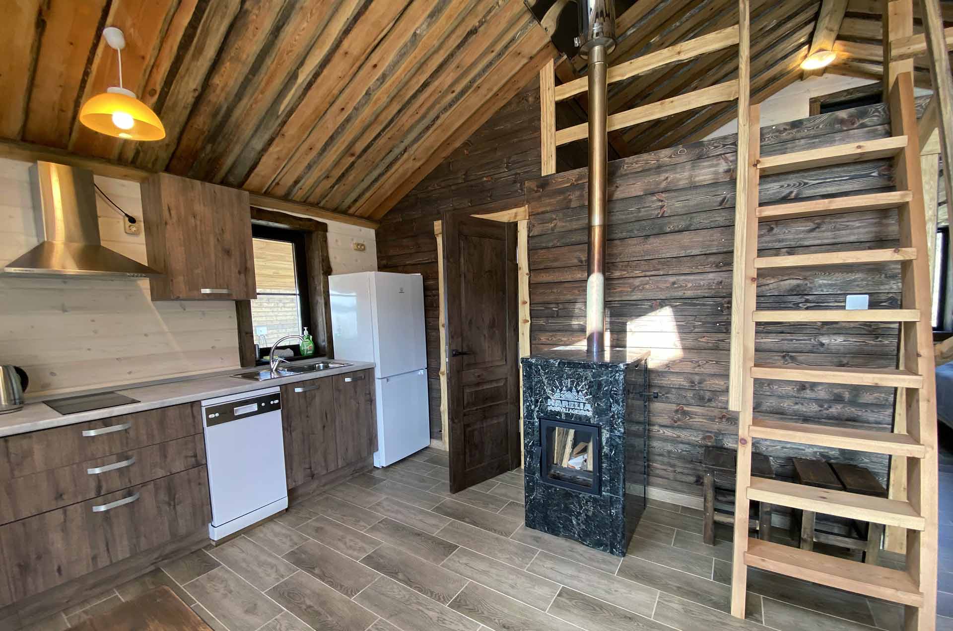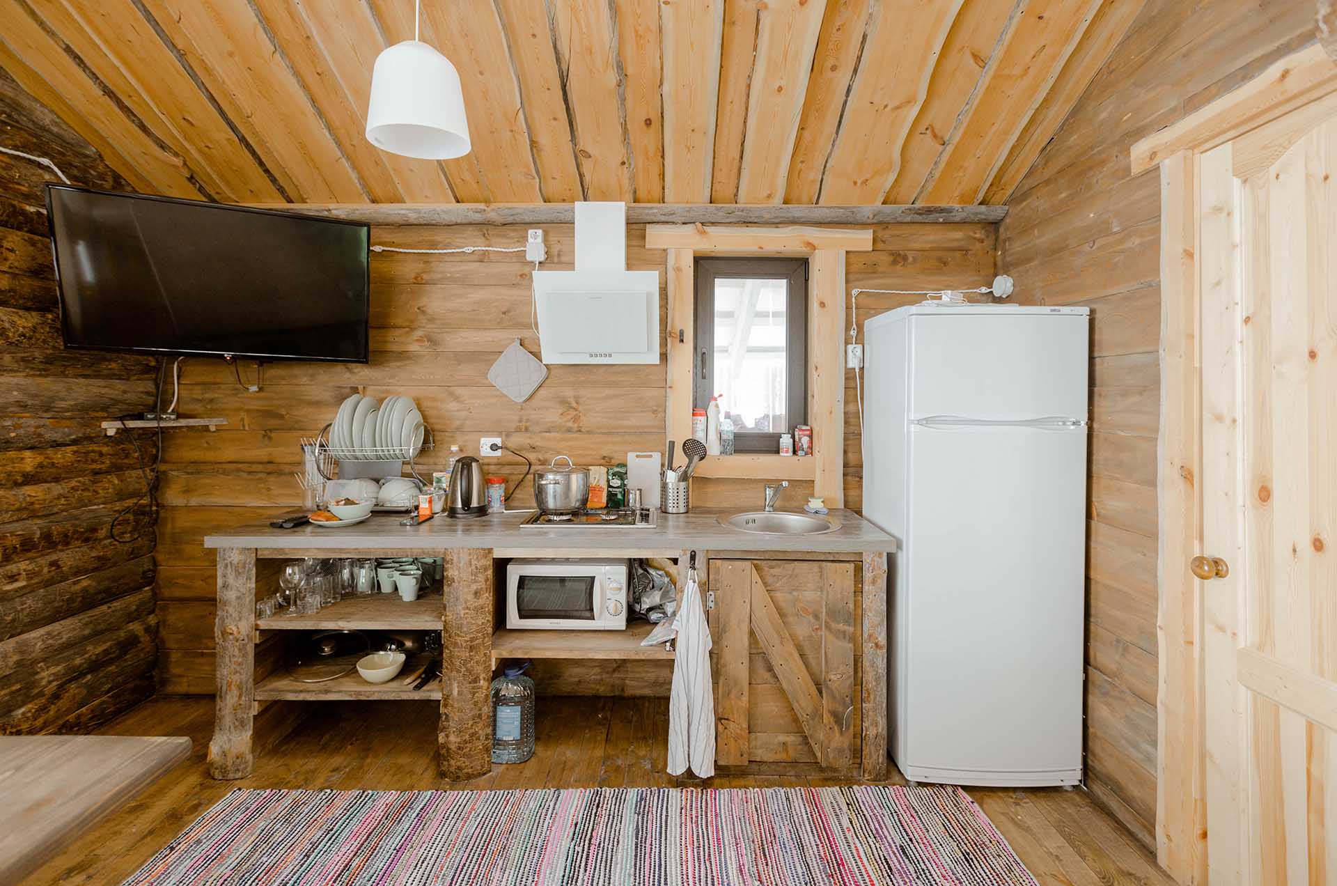 - Кухня:Холодильник; Микроволновка; Варочная поверхность; Чайник; Набор посуды; Принадлежности для барбекю