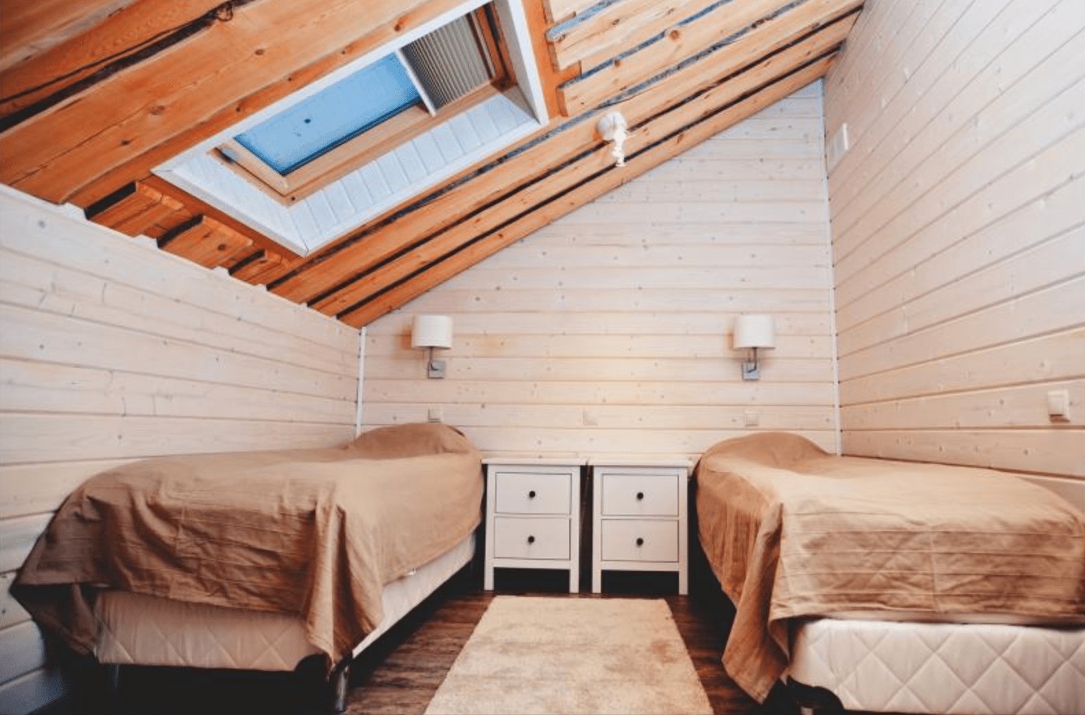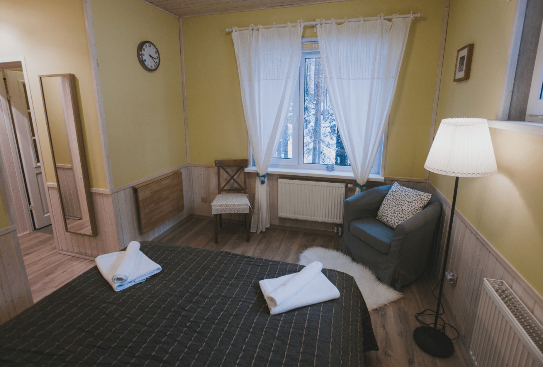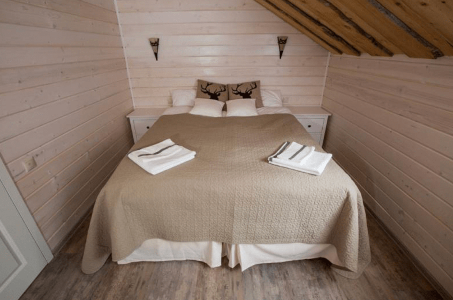В светлых уютных 2-местных номерах, пахнущих древесиной, в оформлении использованы натуральные материалы. В каждом номере возможно дополнительно разместить детскую кроватку для малыша до 2 лет, а двуспальная кровать легко трансформируется в две односпальных.
