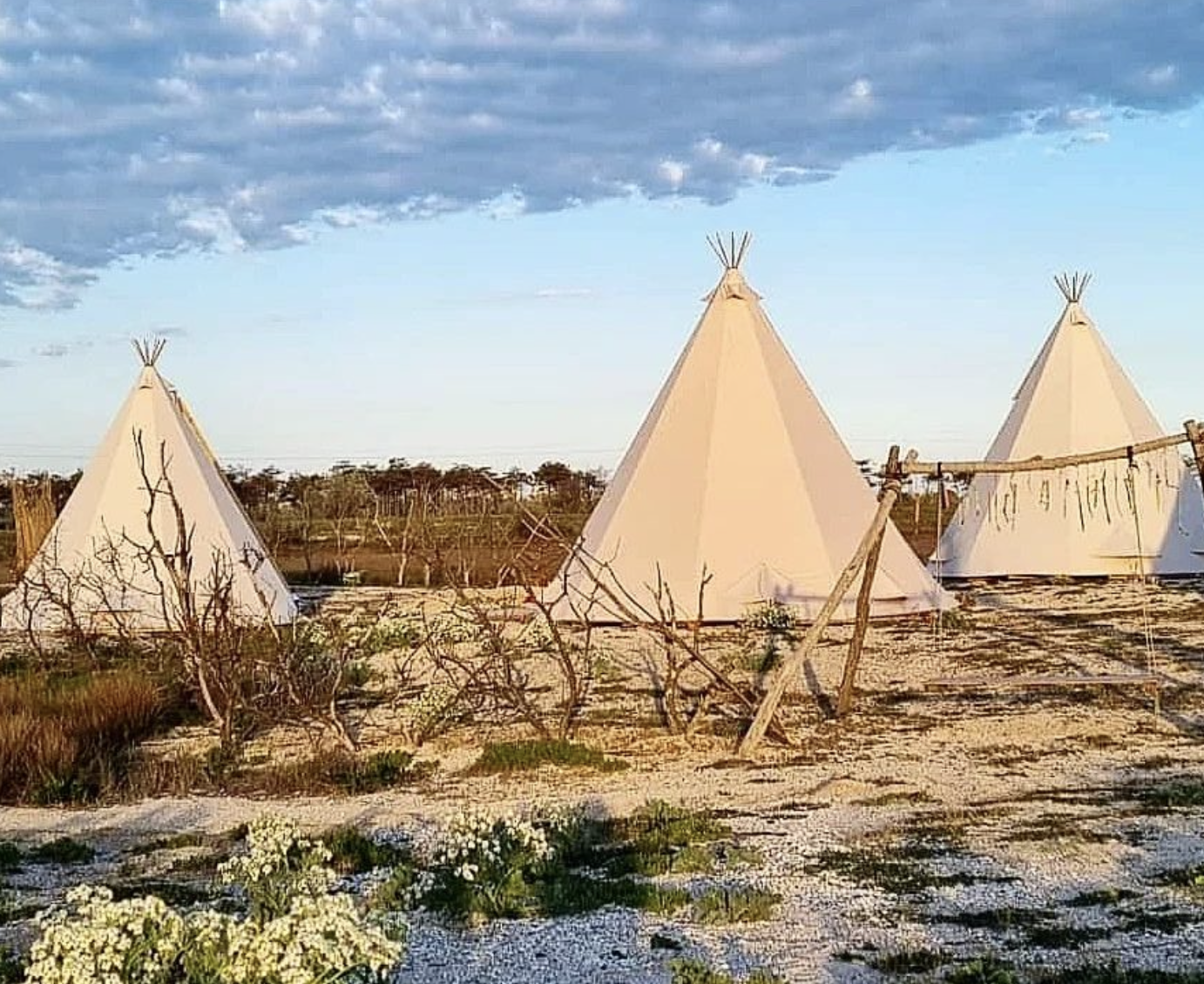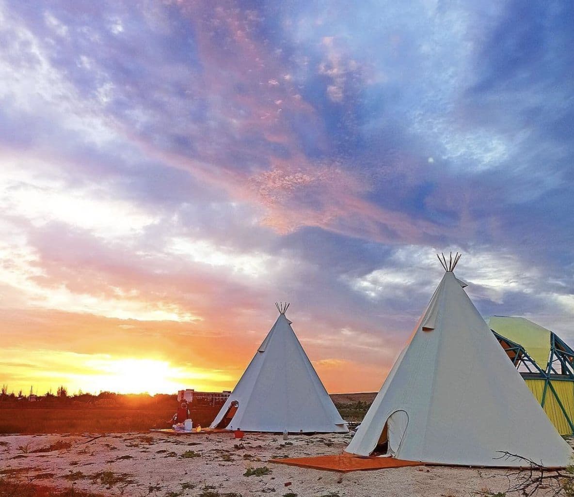 Уютный глэмпинг на берегу Азовского моря. Гости могу расположиться в уникальных типи, наслаждаться восхитительными закатами.