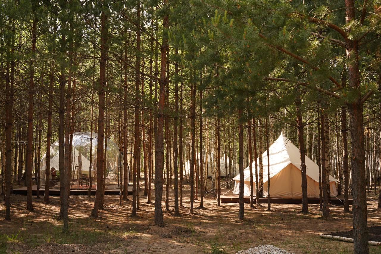 В лесу расположен мини-ресторан. Аренда купола стоит от 4000 рублей. Прозрачный купол вмещает до 10 человек и подходит для романтических свиданий, семейных торжеств, йога-практик и камерных мероприятий. Можно заказать ужин под ключ и насладиться вечером с близкими за одним столом с видом на лес.