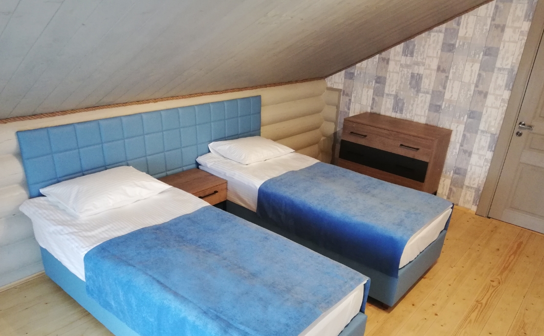 - Две односпальные кровати на антресоли, размер 80х200 см (по необходимости объединяются в двуспальную кровать 160х200 см);