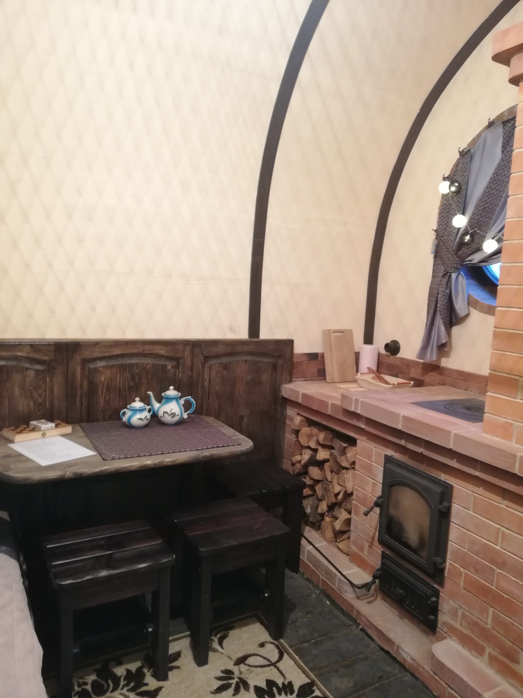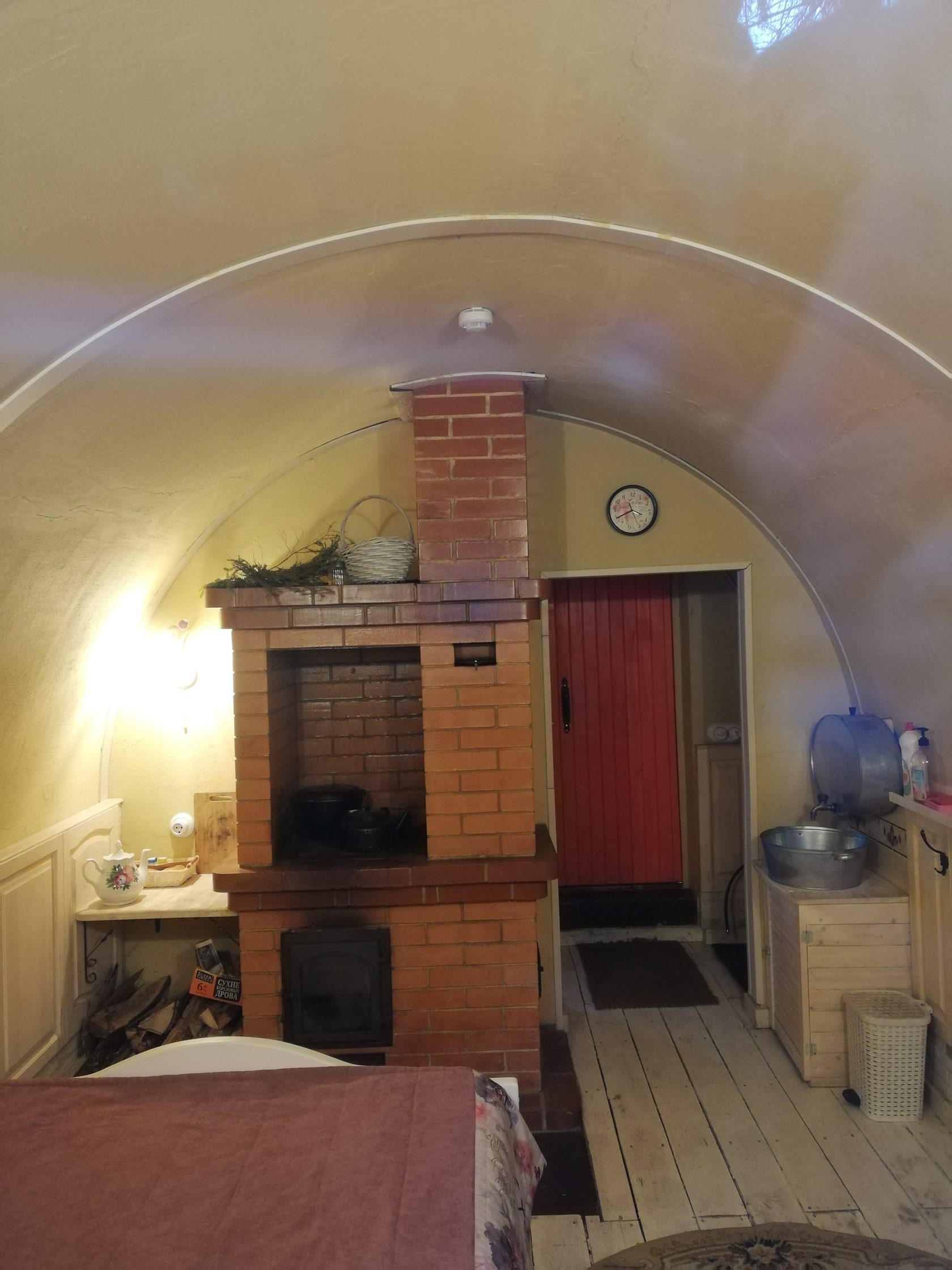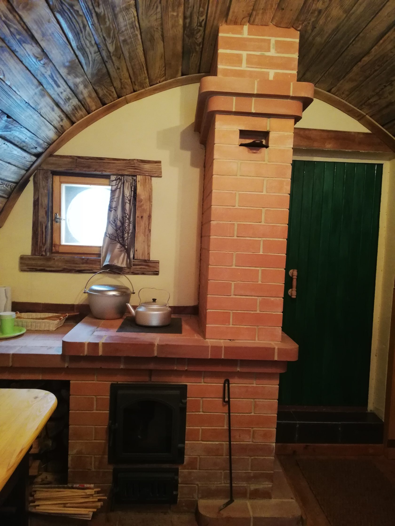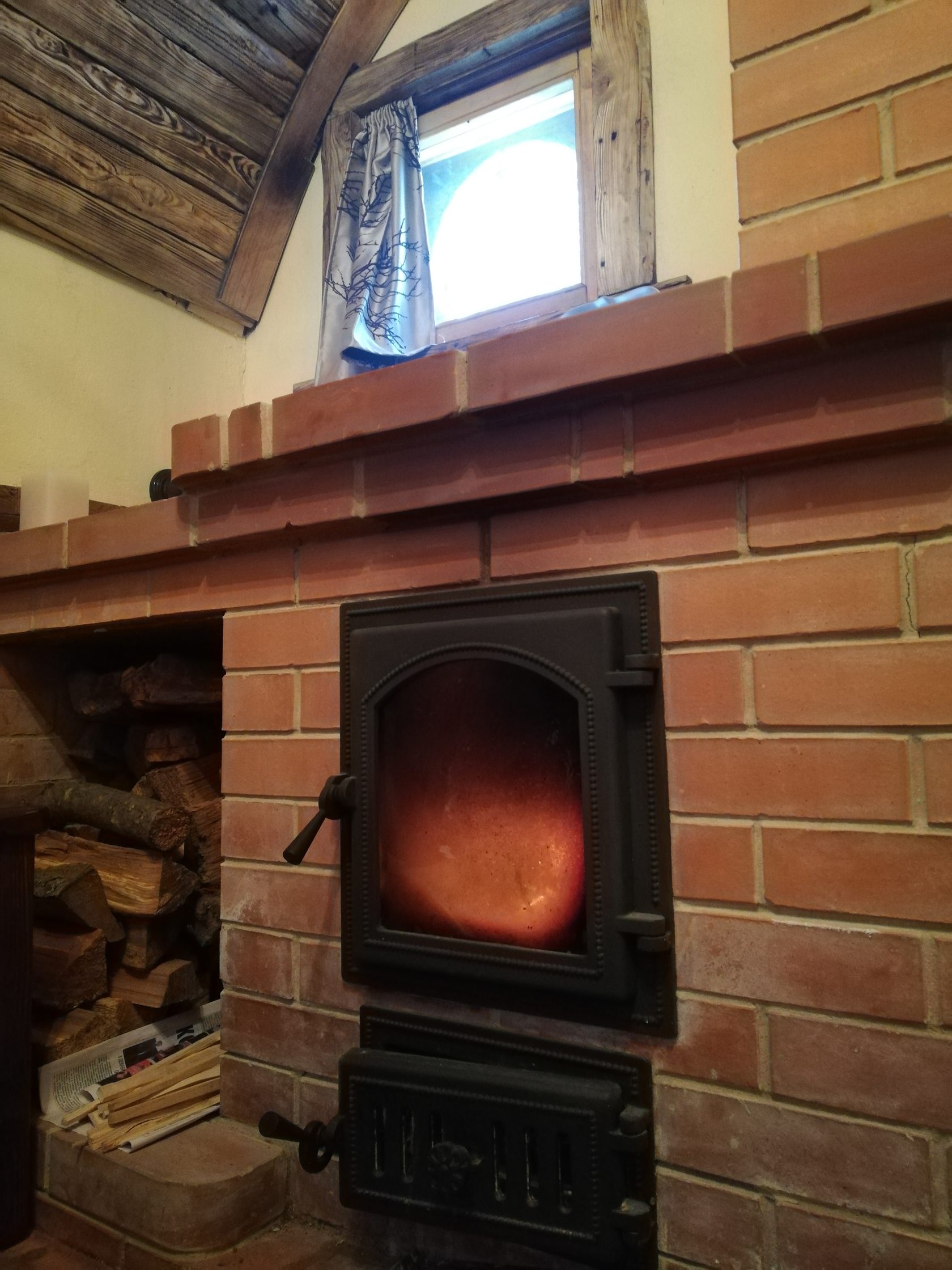 - Кирпичная печь на дровах с плитой для приготовления пищи;